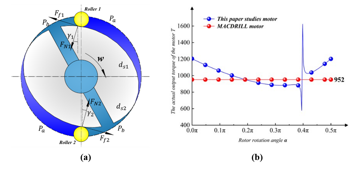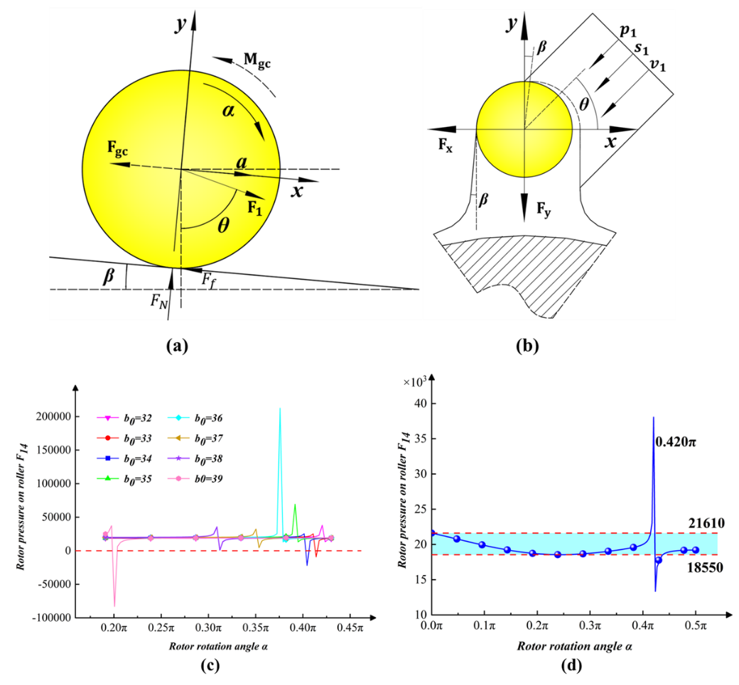 图2 叶片马达工作过程滚柱受力与结构参数优选分析图
