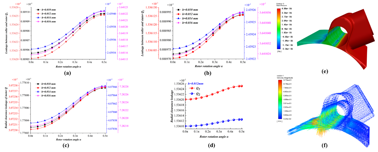 (2) 构建动密封中滚柱与转子、定子侧壁之间的间隙泄漏数学模型,结合计算流体动力学(CFD)仿真,定量揭示出:密封泄漏量与间隙高度及压差呈正比关系,与钻井液粘度呈反比关系,且转速对泄漏影响可忽略不计。此外,仿真结果表明滚柱—转子间泄漏略大于滚柱—侧壁间泄漏,为后续设计提供了关键依据。