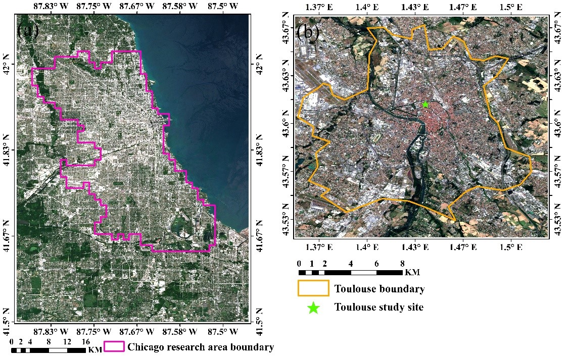 在芝加哥和图卢兹等典型城市的系统验证表明,GUTA-ATCE模拟的LST与MODIS观测LST高度一致,相关系数达0.98,均方根误差约为2.35K;同时,在不同季节,不同城市几何结构下,模型均表现出良好的稳定性。
