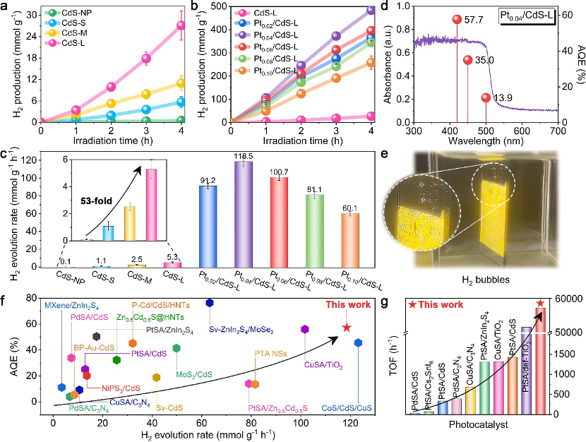 3. 性能突破:这种通过极化载体本征电场激活单原子位点的策略,成功克服了传统单原子催化剂活性受限的瓶颈,实现了高效光解水制氢。