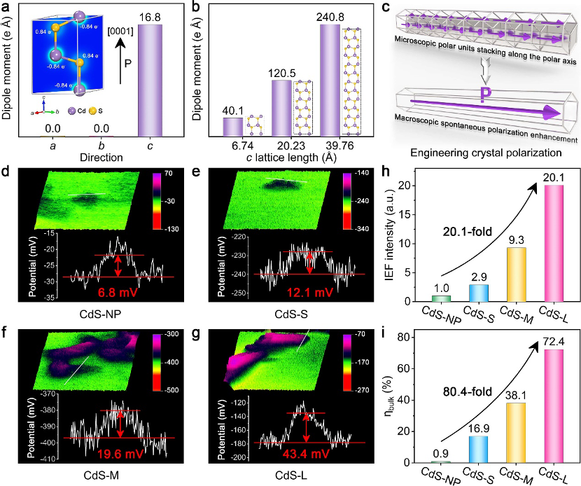 图3. 六方CdS的极性来源与极化电场促进体相电荷分离