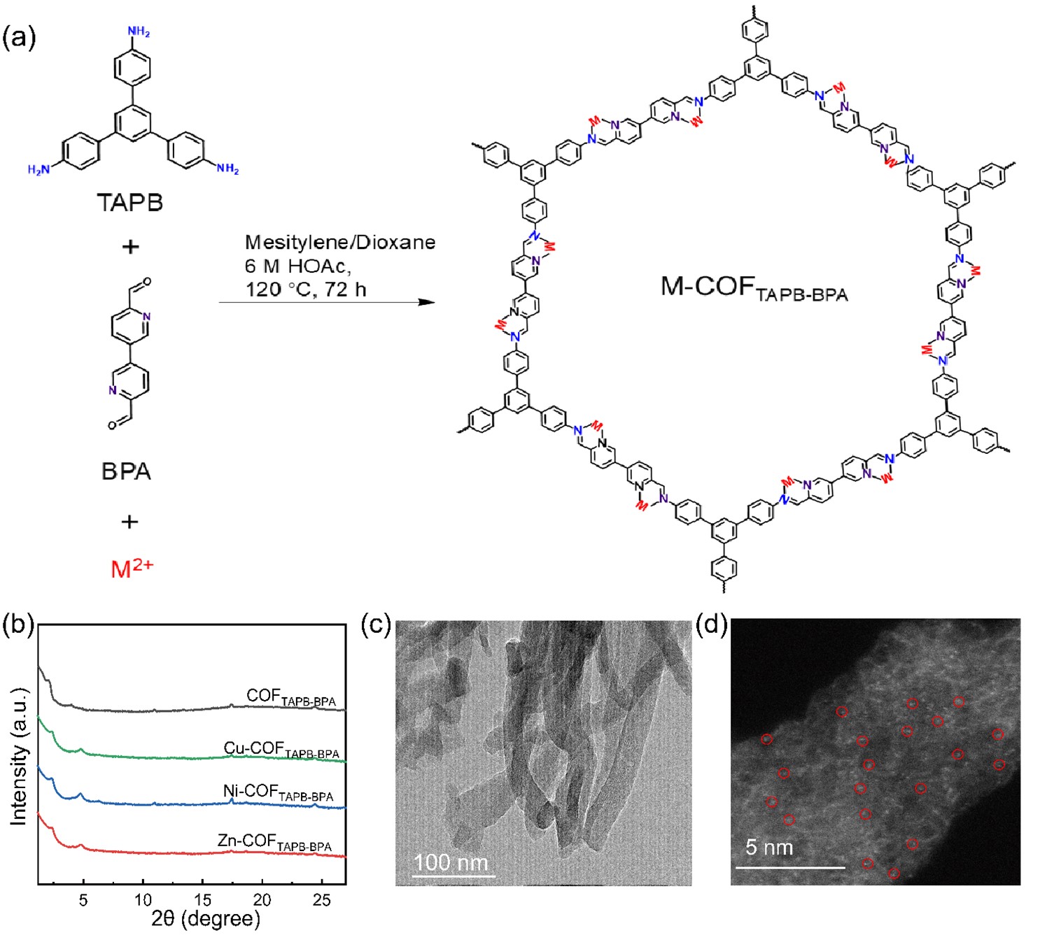 1. 成功制备了一系列吡啶基亚胺类COFs基金属单原子催化剂。