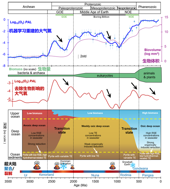 图1. 机器学习大气氧反演结果及其与生物-构造的协调演化