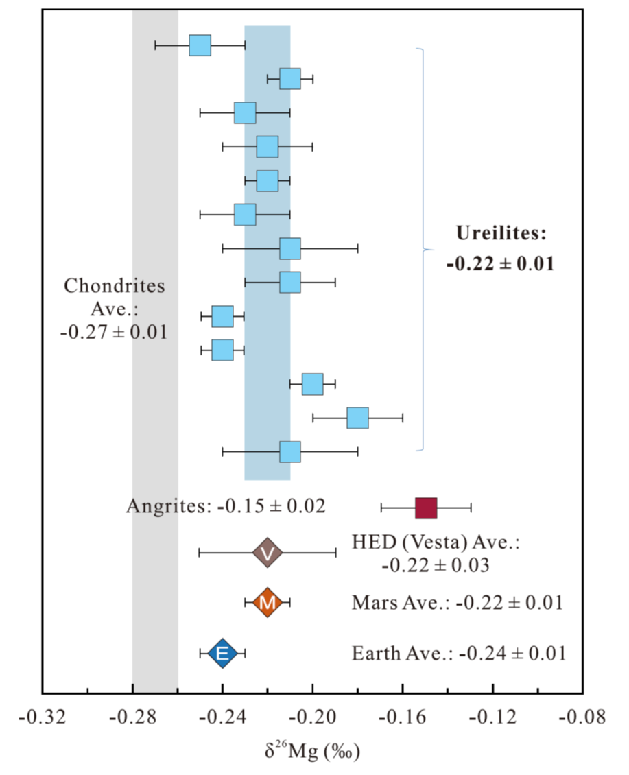 图1 Ureilites Mg同位素组成