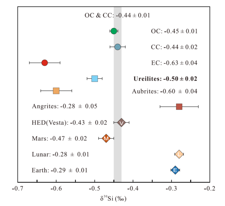 图2 Ureilites硅同位素组成