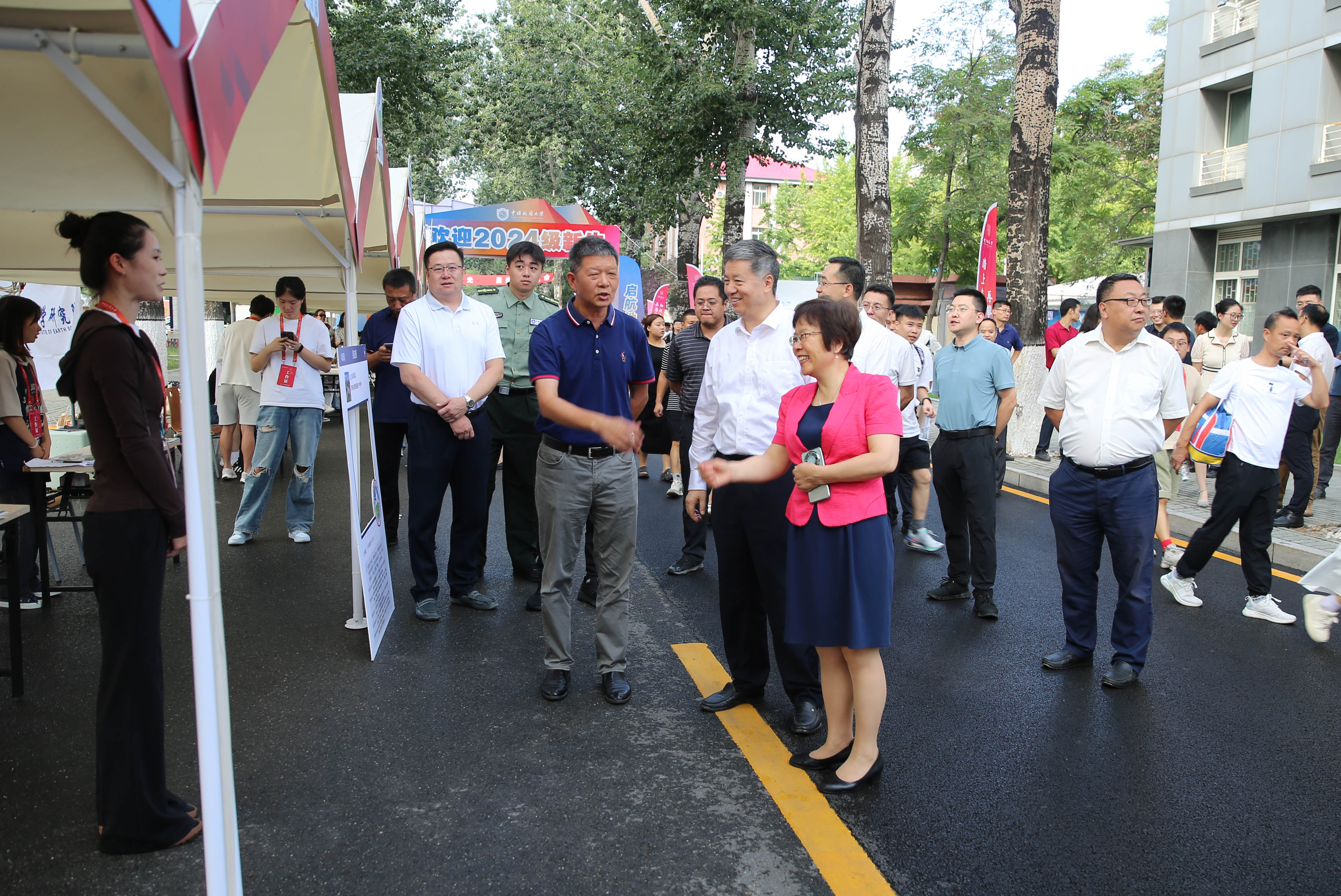 “今年招生情况怎么样?目前有多少学生报到了?” “欢迎你们的到来!”校领导一行先后前往摇篮路集中迎新点、学生宿舍等地,对迎新情况和各学院学生培养情况进行了深入了解,关切了迎新工作师生、志愿者们的工作开展情况,向新生及亲友们表达欢迎祝贺,勉励同学们在校积极探索科学前沿,共绘未来学术蓝图,书写“不负时代、地质报国”的青春答卷。