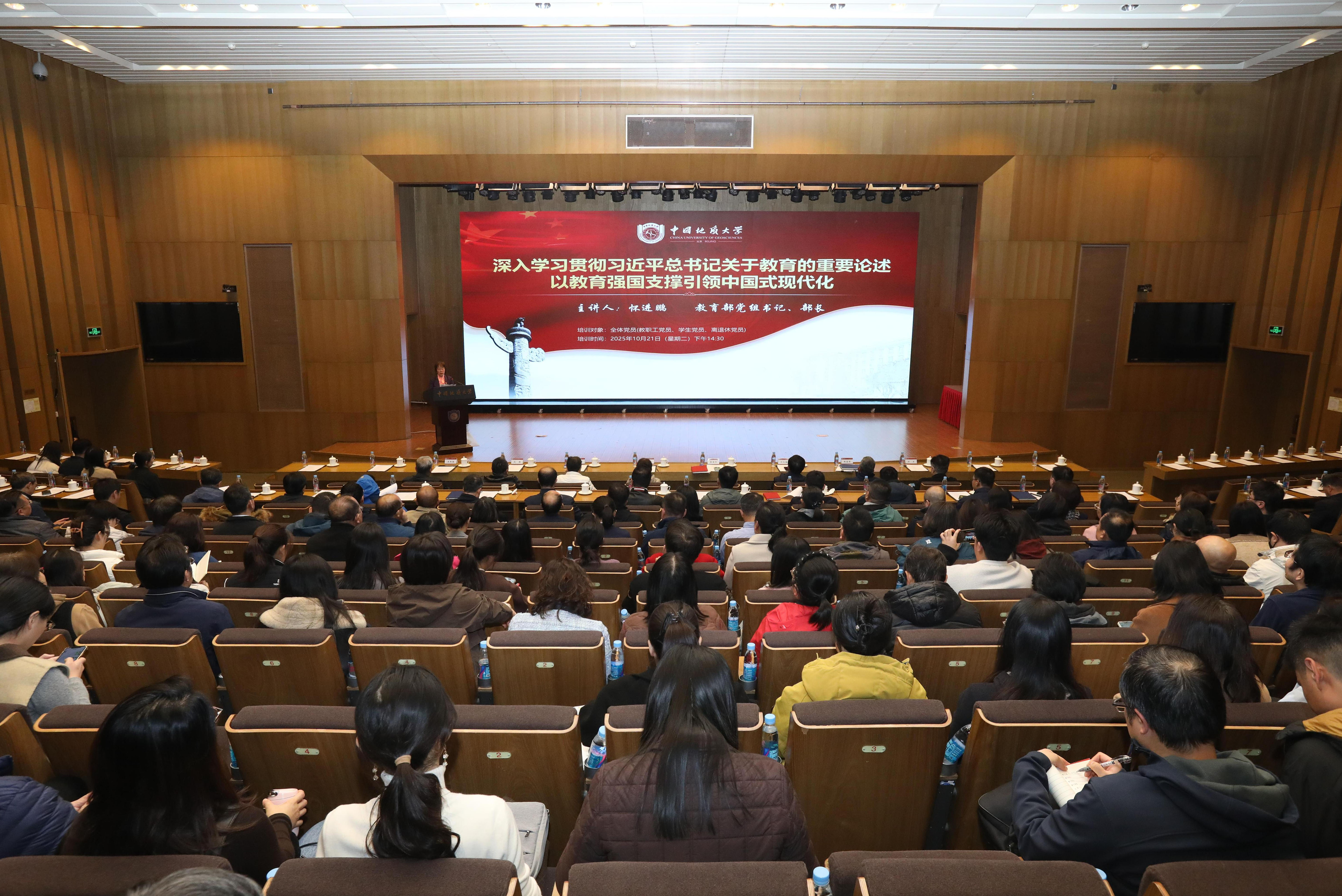校党委书记雷涯邻在主持培训时表示,怀进鹏部长的报告站位高远、思想深刻、内容详实,既有理论高度,又有实践深度,为全校党员深入理解教育强国战略提供了重要指导。她强调,全体师生党员要牢固树立全新教育观,紧密围绕教育强国建设目标,将学习成果转化为推动学校高质量发展的实际行动,以实际行动回答好“教育强国,地大何为”的时代之问。为巩固本次学习成效,雷涯邻书记提出三点要求:一是“学深悟透”筑牢思想根基,各二级党组织要确定主题开展专题研讨,推进理论学习入脑入心;二是“学用结合”务求实效,将学习成效切实转化为破解发展难题、服务师生需求的务实举措;三是“全员覆盖”压实责任,加强过程管理,严格考勤与补课制度,确保培训质量和效果。