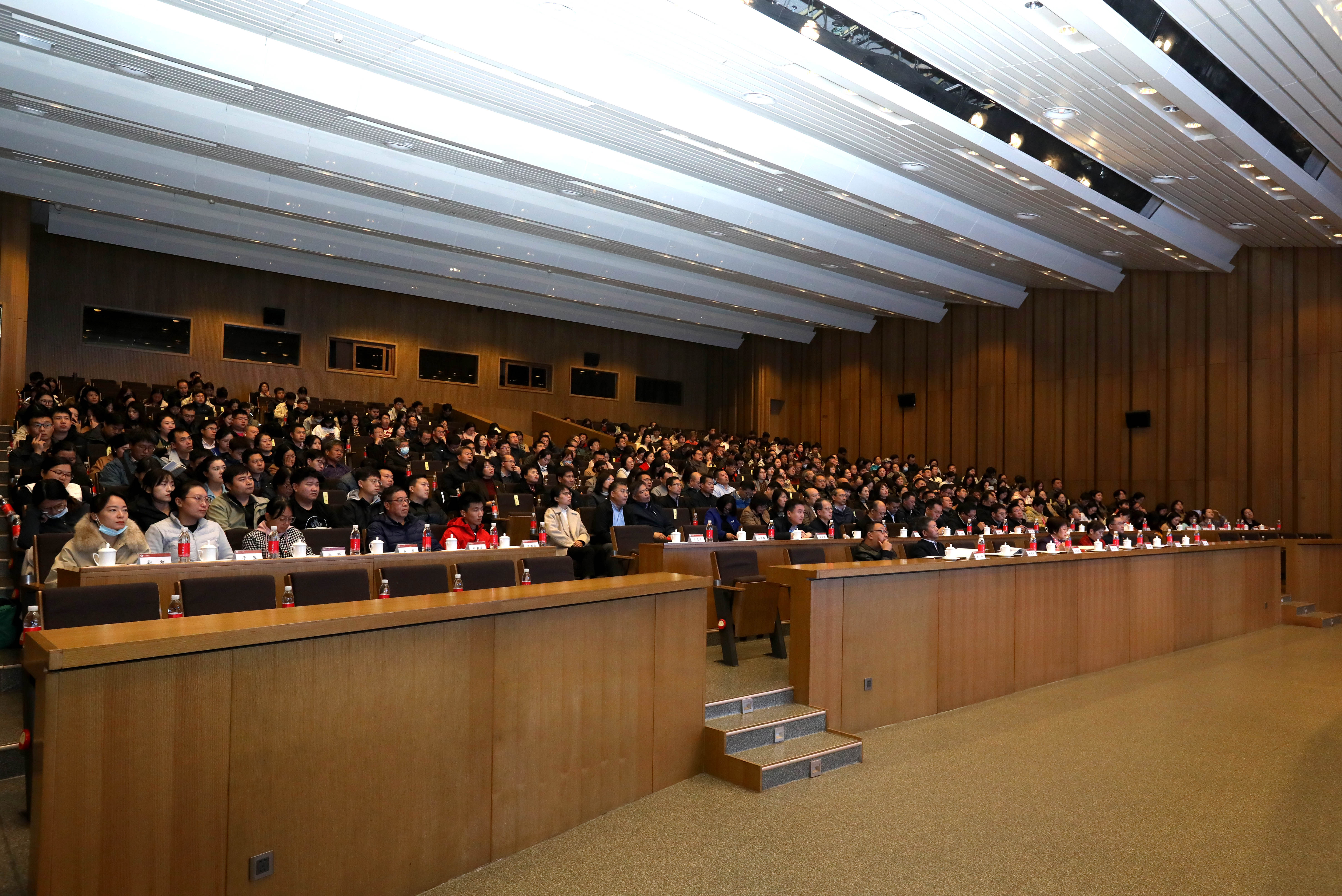 校院两级中心组成员,全体中层干部,2025年机关党委、直属单位党委干部教育培训班学员,各学院学工组长、学工组长助理、专兼职辅导员,以及人工智能学院学生代表共300余人参加会议。