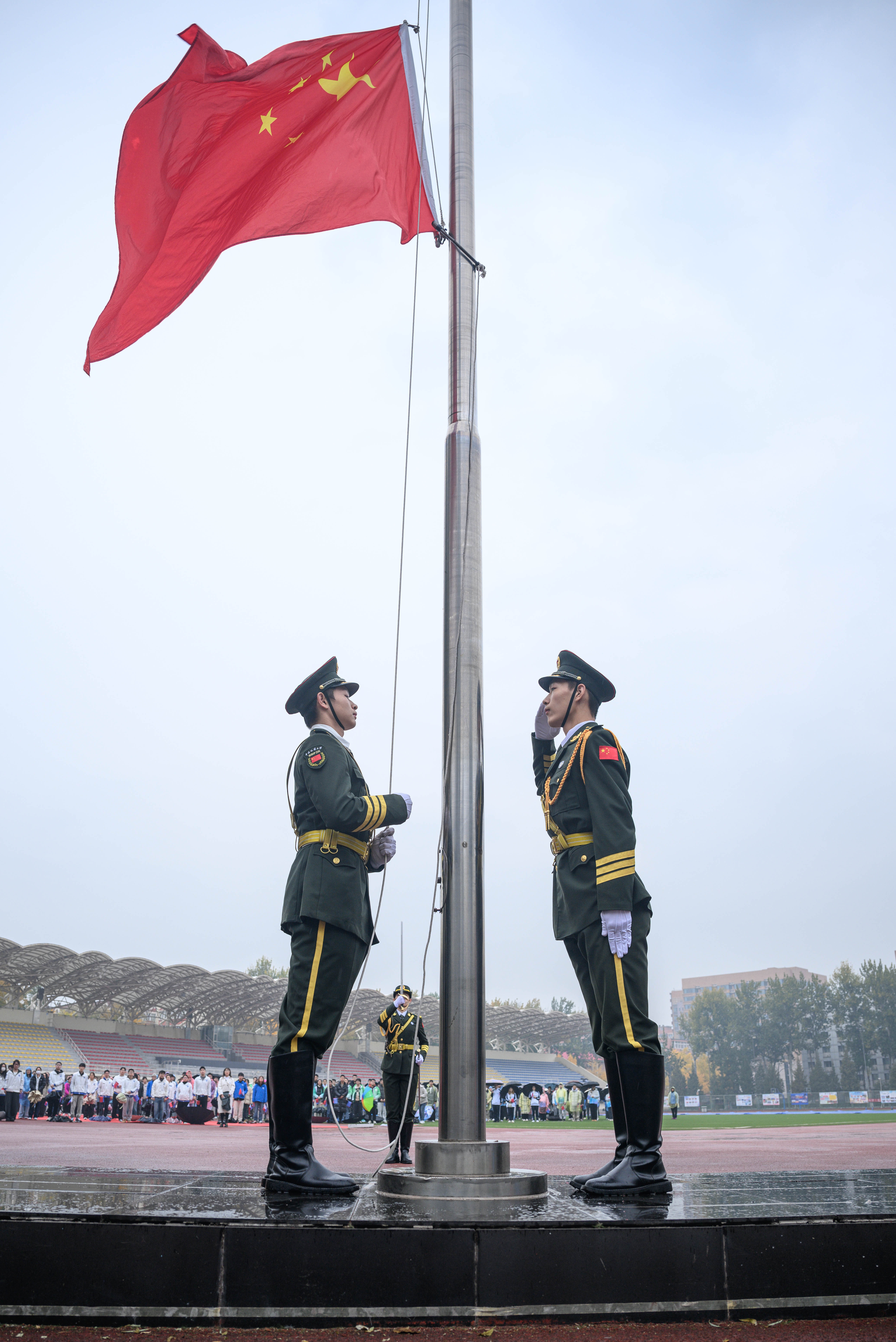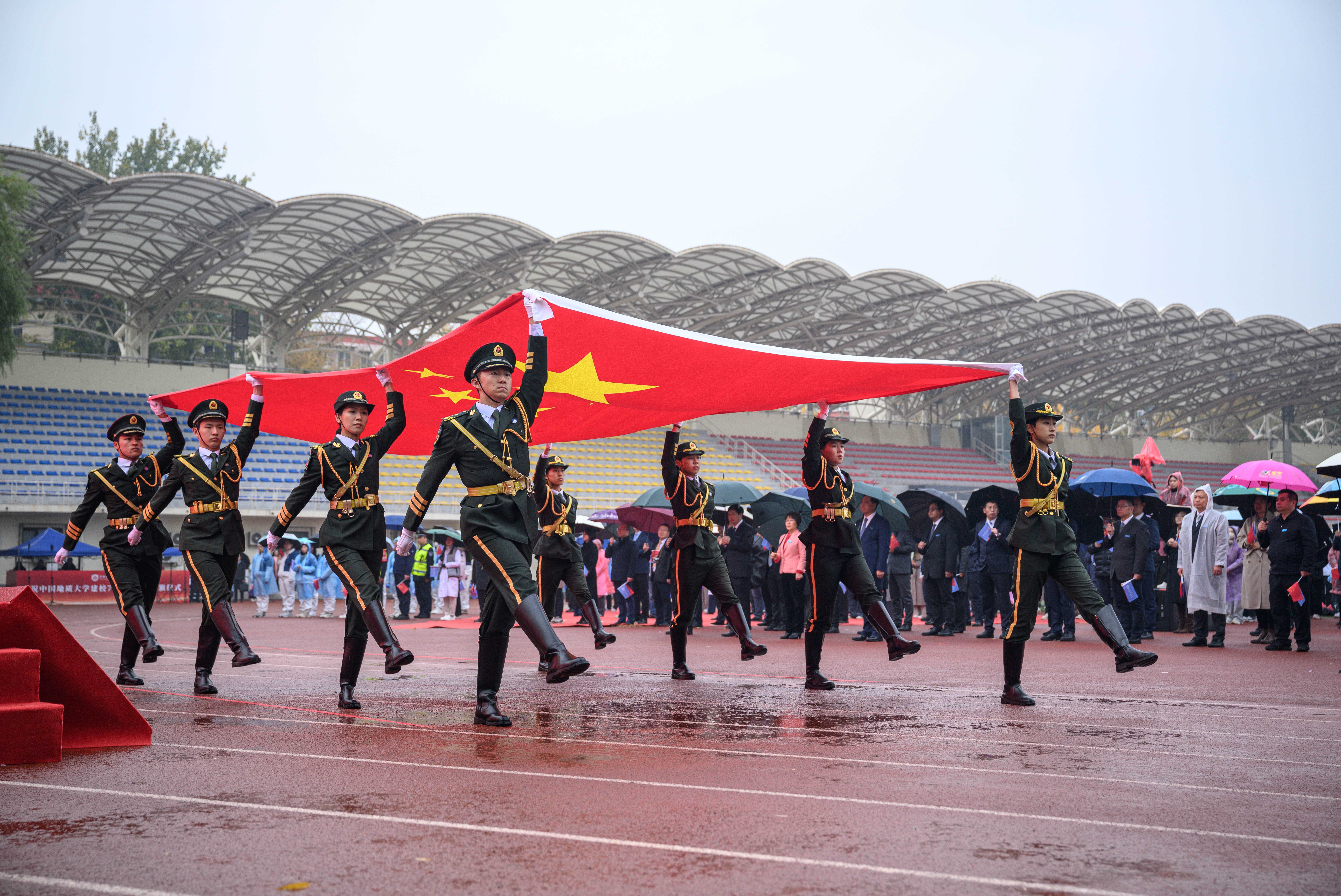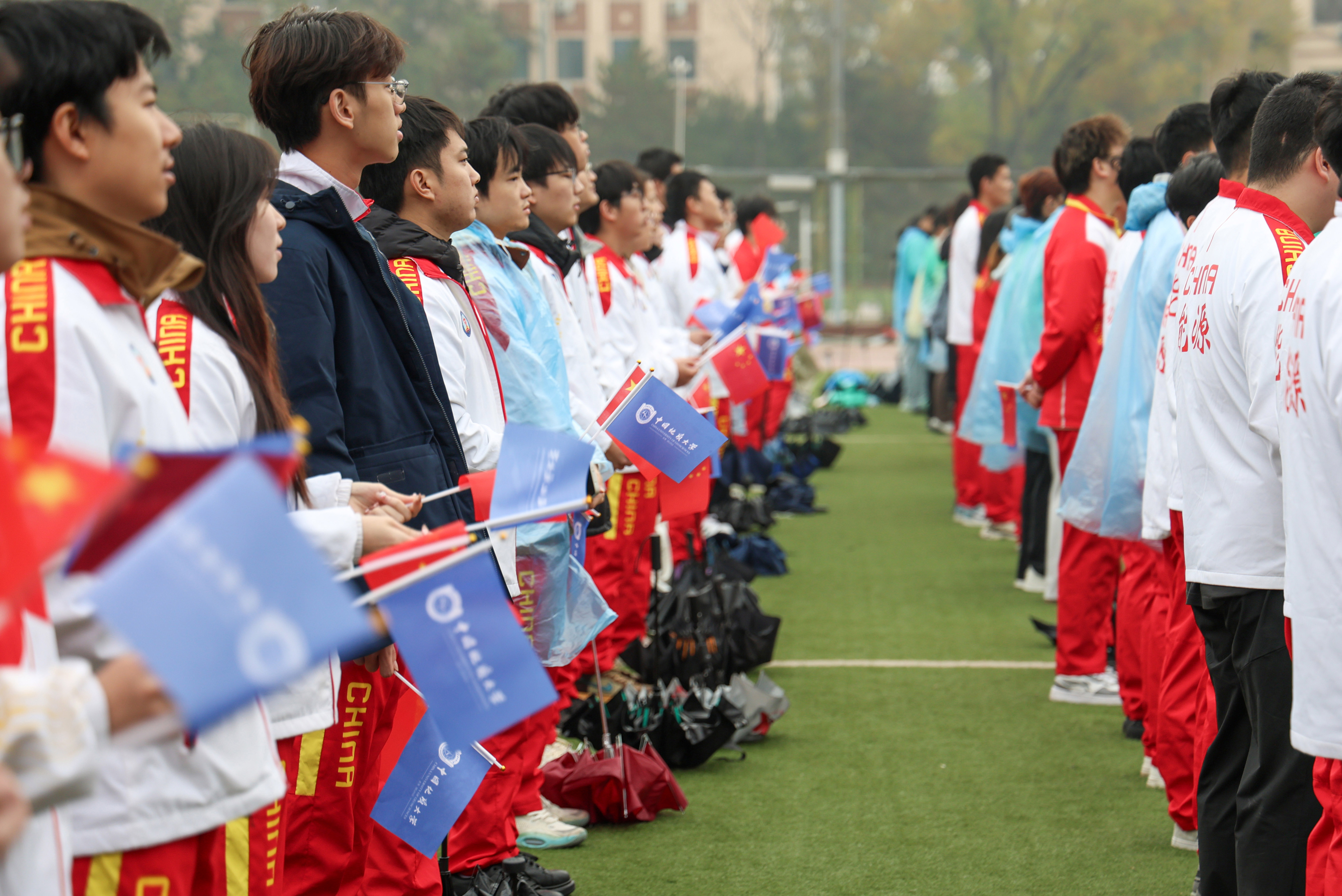 仪式上,校长赵志丹为国旗护卫队授旗。这面由北京市人民政府天安门地区管理委员会赠予我校的编号为2022-0150号的国旗,曾于2022年11月7日地大建校70周年当天高高飘扬在天安门广场。这是一份承载着国家尊严与民族精神的宝贵礼物,是对我校七十余载地质报国征程的珍贵礼赞,更是对新时代地大人的殷切嘱托。