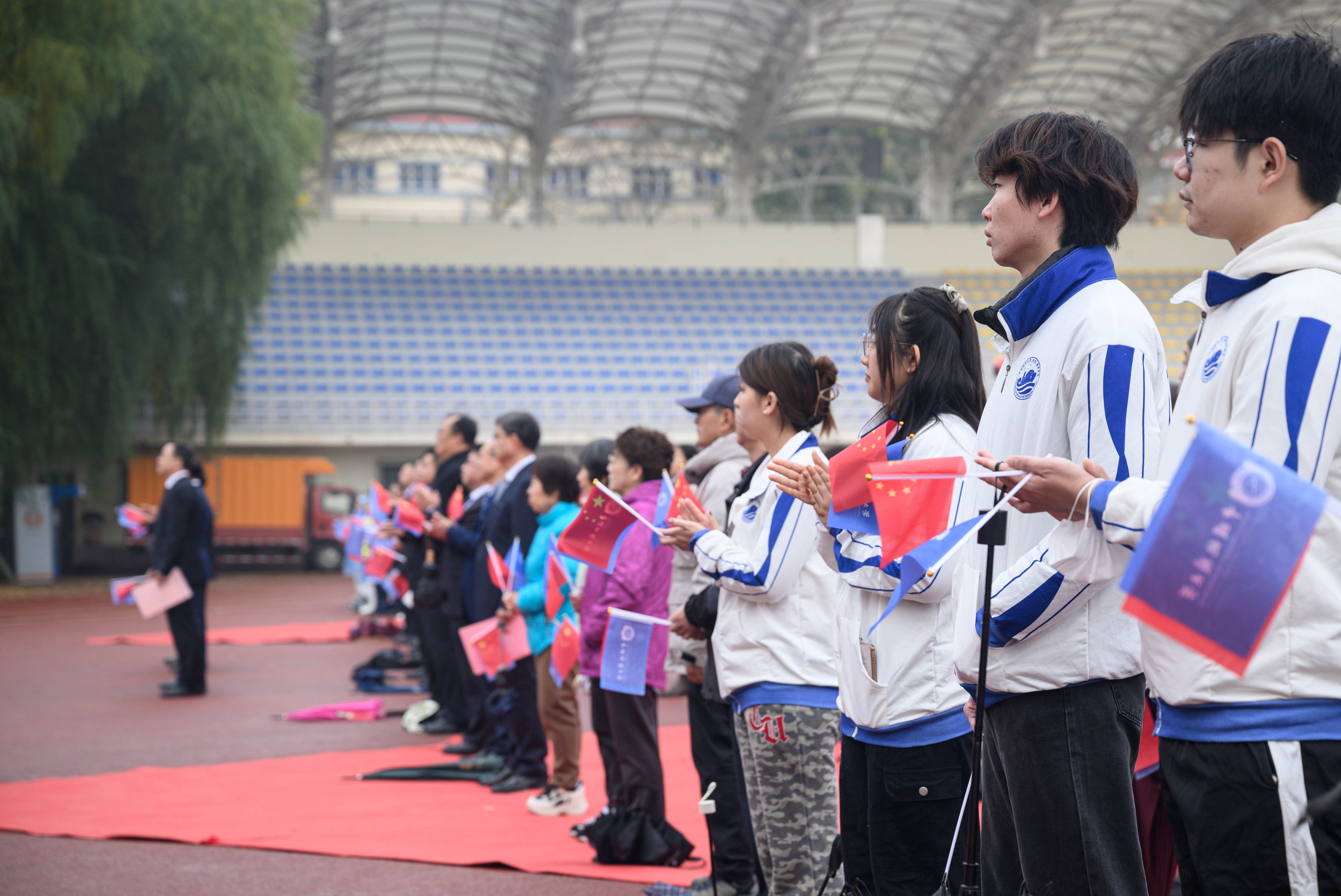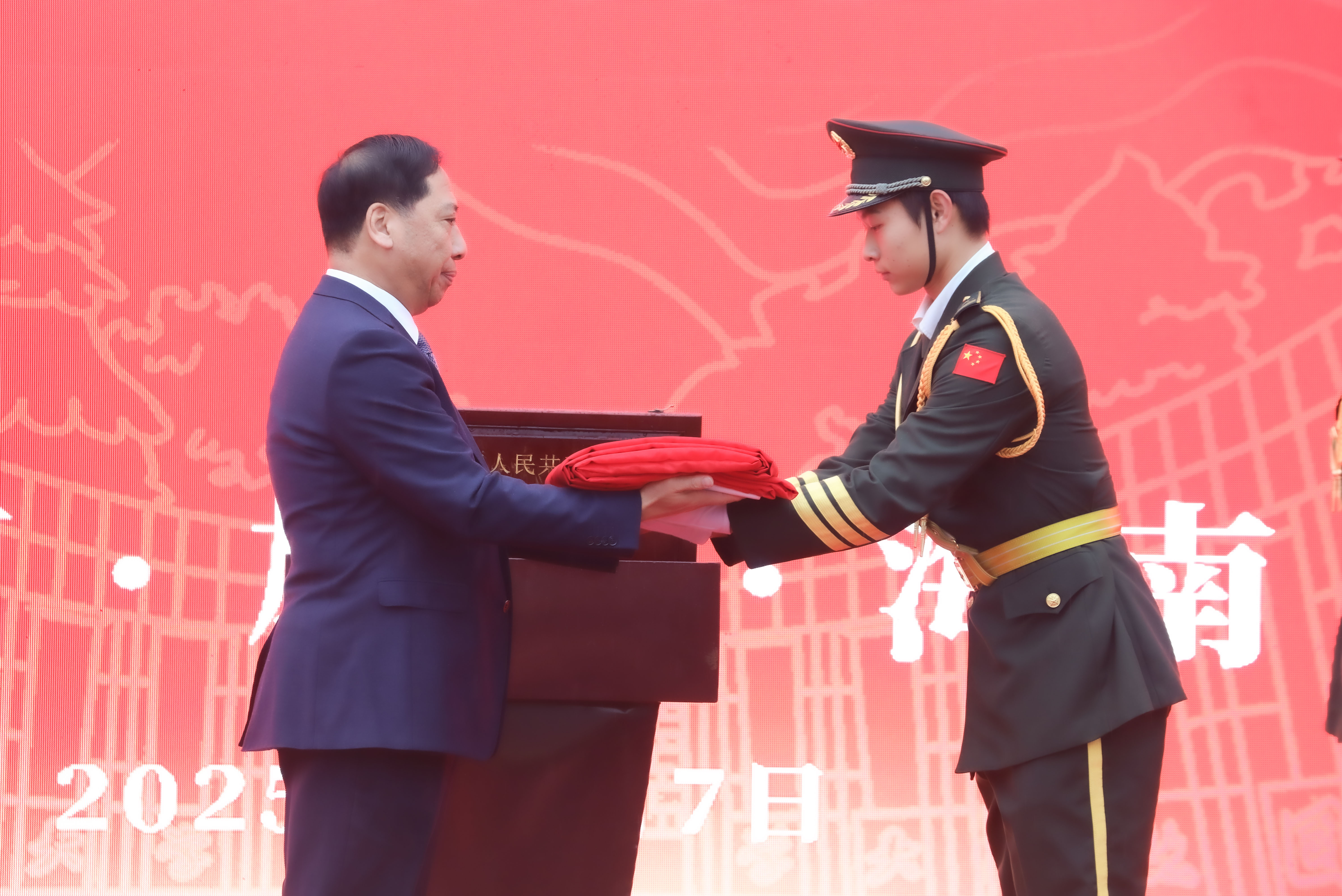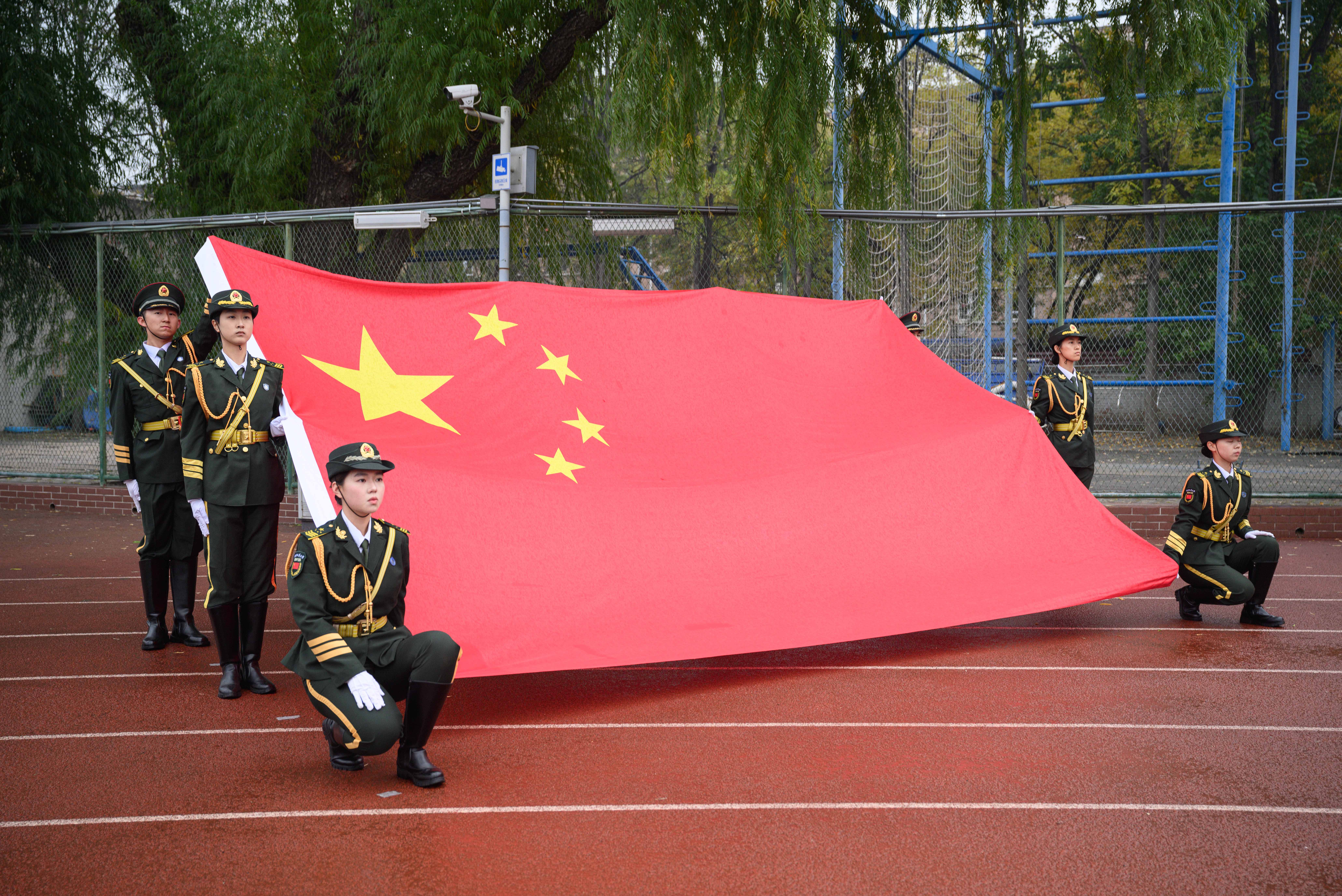 仪式上,校长赵志丹为国旗护卫队授旗。这面由北京市人民政府天安门地区管理委员会赠予我校的编号为2022-0150号的国旗,曾于2022年11月7日地大建校70周年当天高高飘扬在天安门广场。这是一份承载着国家尊严与民族精神的宝贵礼物,是对我校七十余载地质报国征程的珍贵礼赞,更是对新时代地大人的殷切嘱托。