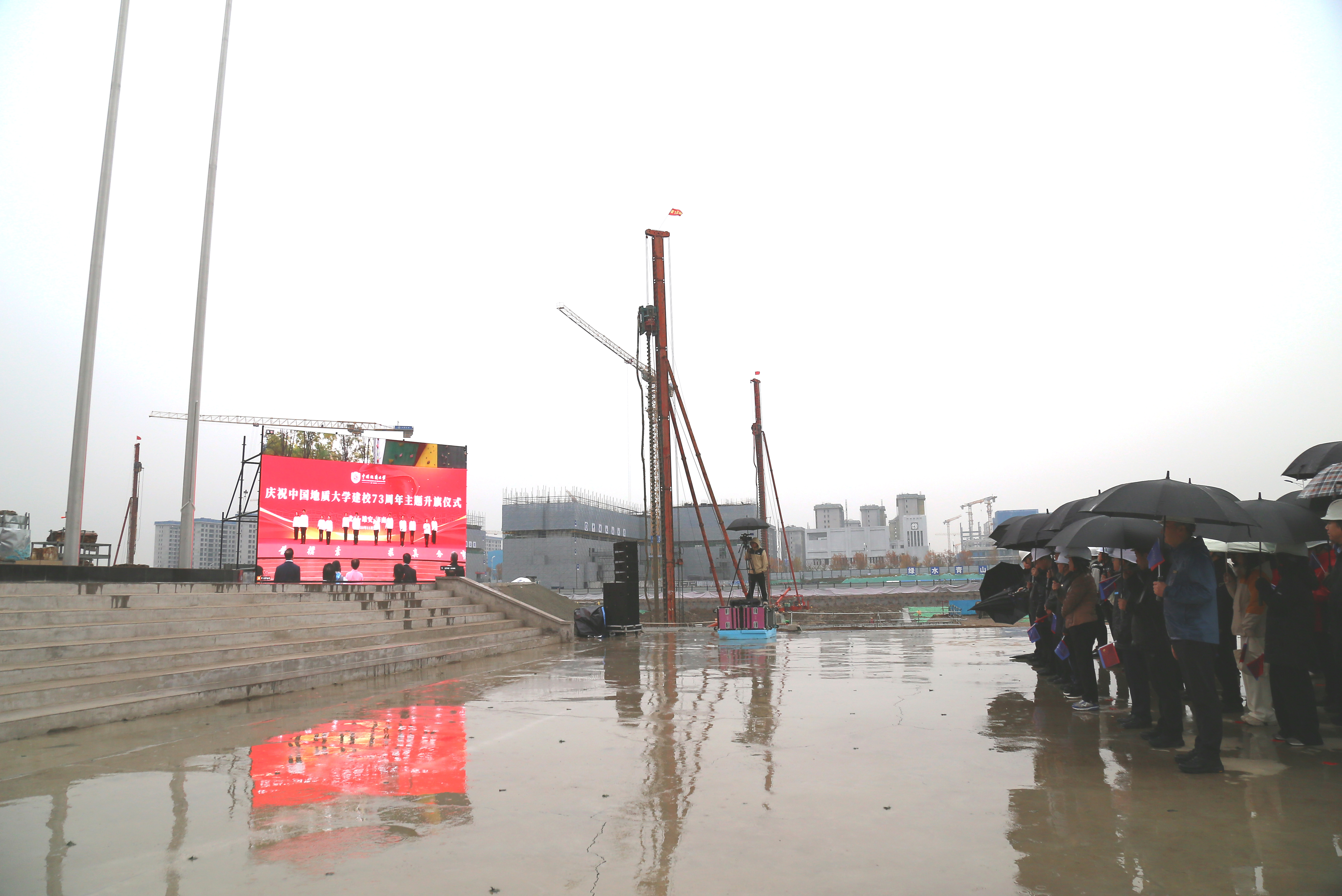 正步铿锵,国歌奏响;一校三区,同心贺岁。当天上午,庆祝中国地质大学建校73周年主题升旗仪式隆重举行。升旗仪式在北京、雄安、海南三个校区同步进行,共升国旗,同贺校庆。全体在校校领导、各二级单位主要负责人、教职工代表、学生代表、离退休教师代表,以及在雄安校区、海南校区分会场的师生校友代表出席仪式。