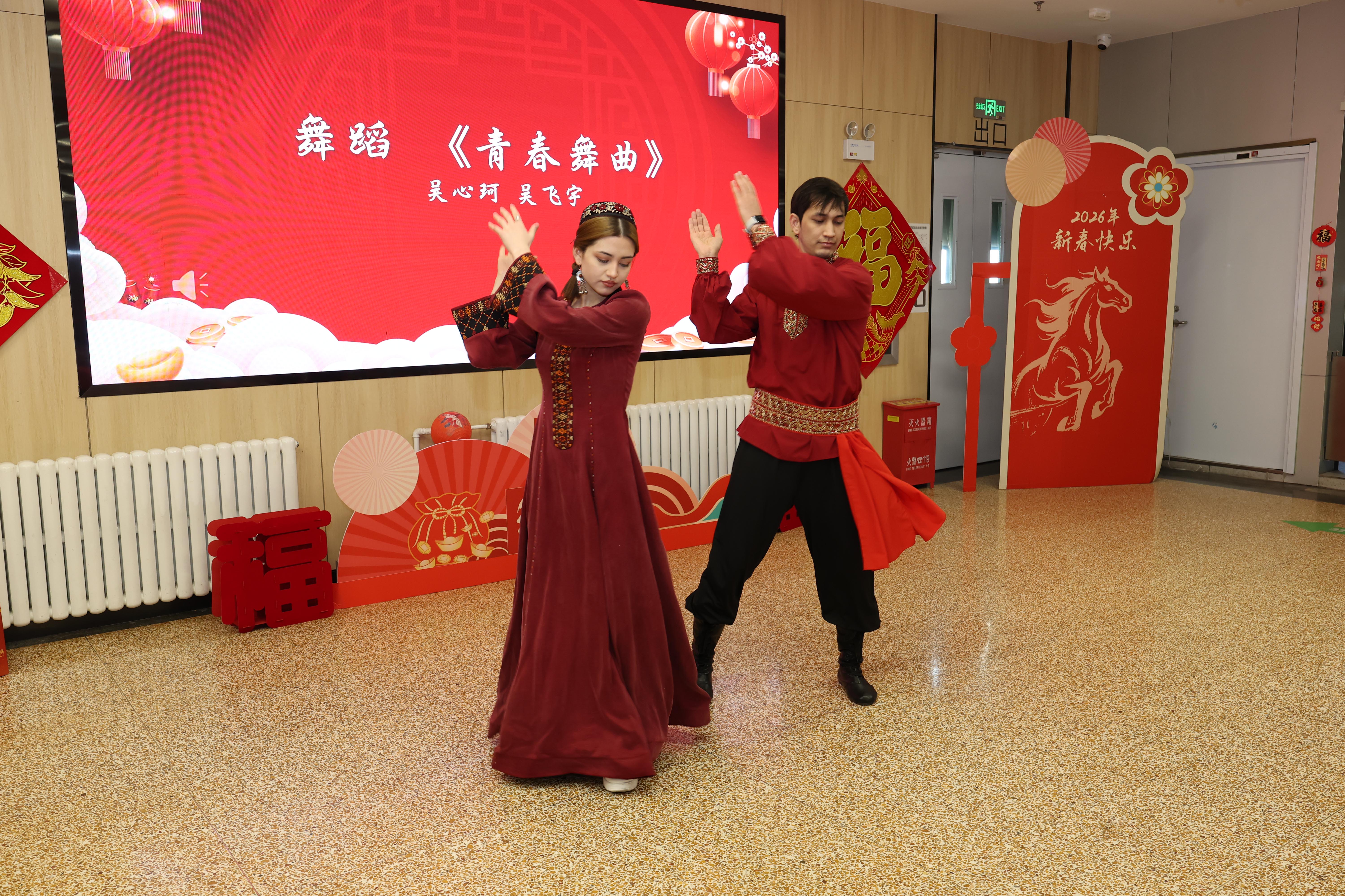 联欢会上,来自五湖四海的北地学子欢聚一堂,共品新春年味,同享团圆喜悦。本次联欢会以 “品年味”“享年趣”“纳年福” 为篇章,将团年饭与才艺、游戏、抽奖相融,沉浸式感受新春氛围。辅导员代表献唱、留学生带来特色舞蹈,精彩节目轮番上演;击鼓传花、马年猜猜乐、听歌识曲等趣味游戏欢乐互动;多轮惊喜抽奖将现场气氛推向高潮,师生同欢、其乐融融,在欢声笑语中喜迎马年新春。