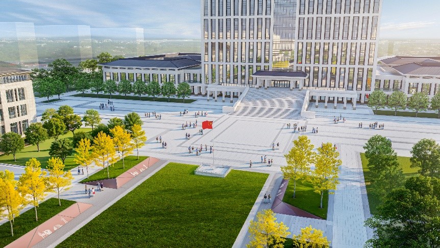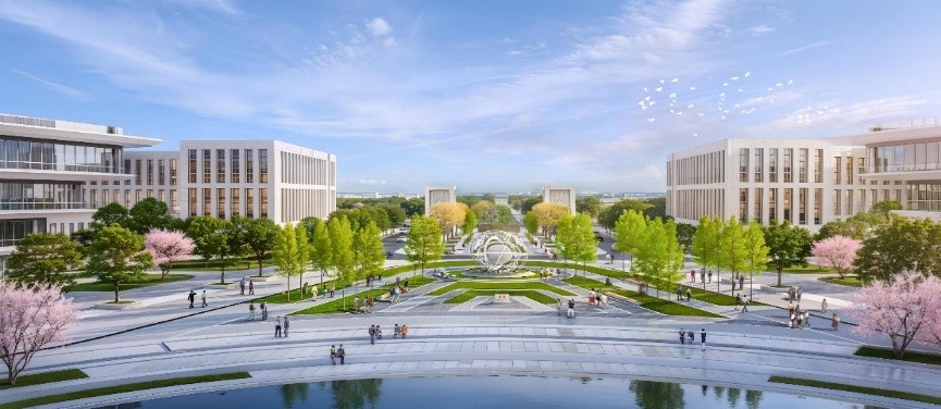 中国地质大学(北京)雄安校区总占地1600亩,其中建设用地1200亩,总办学规模为20000人,分两期建设,一期工程总建筑面积51.89万㎡,满足10251名学生的基本办学及科研平台的建设需求。校区总体规划以“世界眼光、国际标准、中国特色、高点定位”为指导思想,将现代校园建设对于自然生态、绿色低碳、智慧高效、安全便捷、人文人本设计理念的追求和学校校园文化、精神内核进行有机融合,形成了“传承与融合并重、创新与独特兼备”的设计理念。
