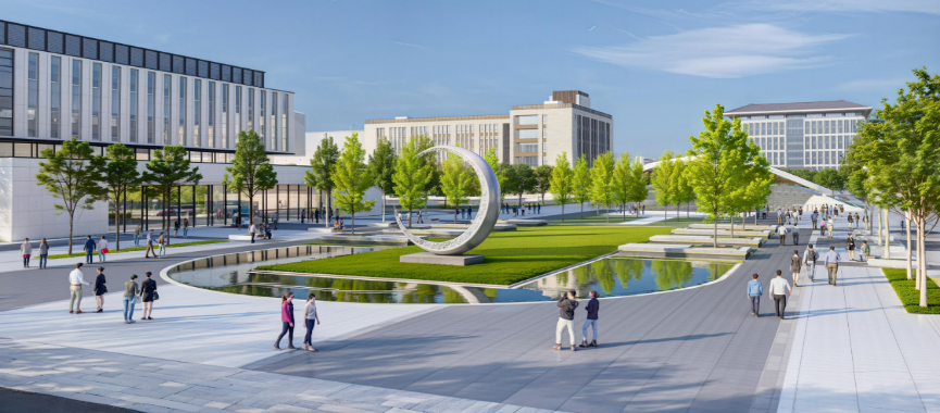 广场3:图书馆南侧广场,拟重点展示学校院士文化。