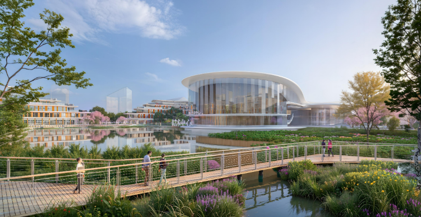 以营造自然和谐的滨水生态环境为核心,为师生提供观景、交流、静思与学习的多样化场所,拟重点打造富有活力与生态意趣的水岸休闲空间。