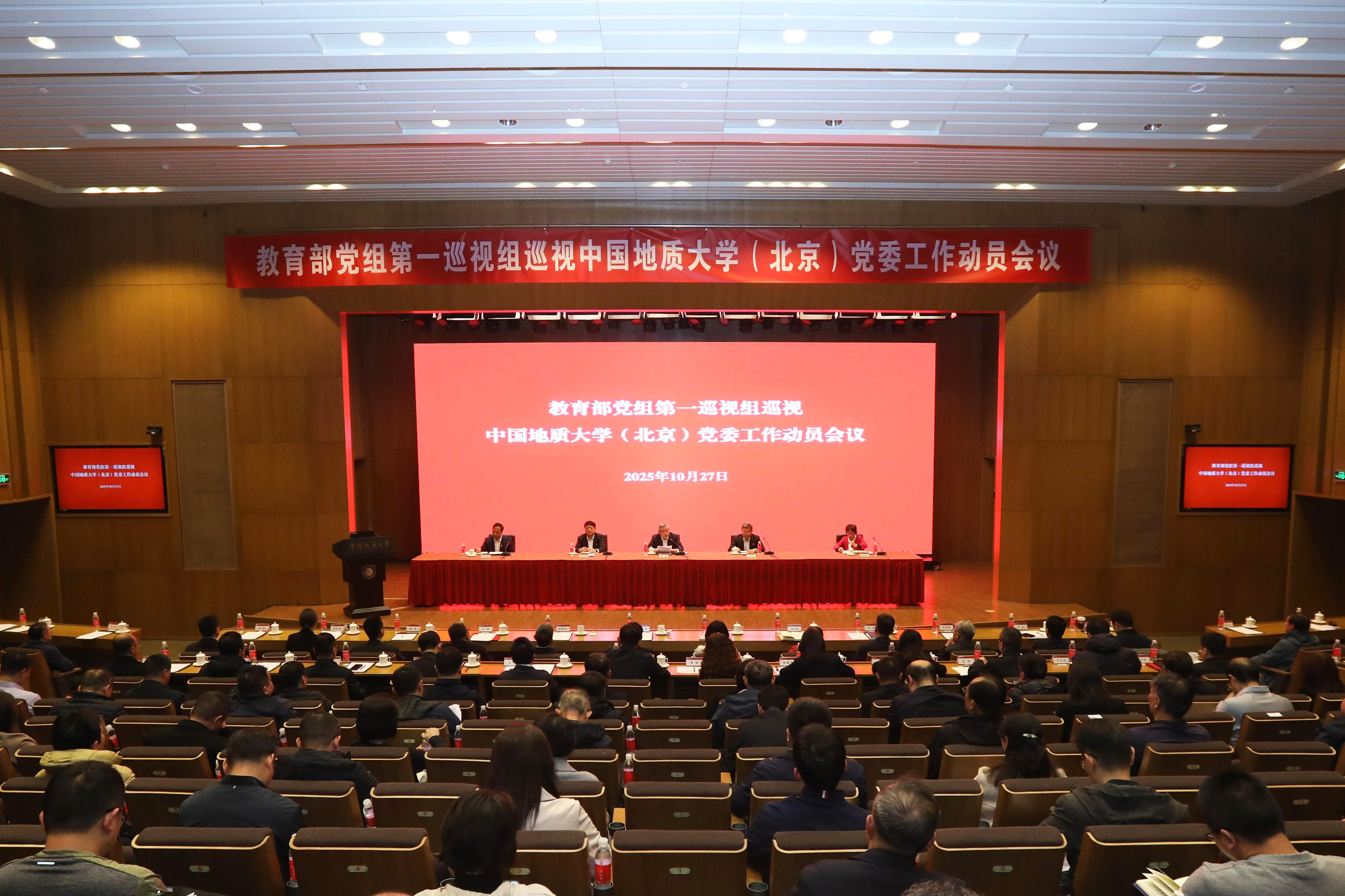 根据教育部党组巡视工作统一部署,2025年10月27日,教育部党组第一巡视组巡视中国地质大学(北京)党委工作动员会议召开。会前,巡视组组长郭佳,副组长张庆东、陈文恩与中国地质大学(北京)党委书记雷涯邻,党委副书记、校长赵志丹见面沟通,通报了巡视工作有关安排。会上,郭佳作动员讲话,赵志丹主持会议,雷涯邻代表学校党委作表态发言。中国地质大学(北京)领导班子成员,教育部党组第一巡视组、教育部巡视办有关同志出席会议。中国地质大学(北京)两委委员,近三年退出领导岗位的原领导班子成员,中层干部、人大代表、政协委员、民主党派负责人、学科带头人、学术委员会委员、党代会代表、教代会代表、工会委员、教师和学生代表、离退休人员代表等列席会议。