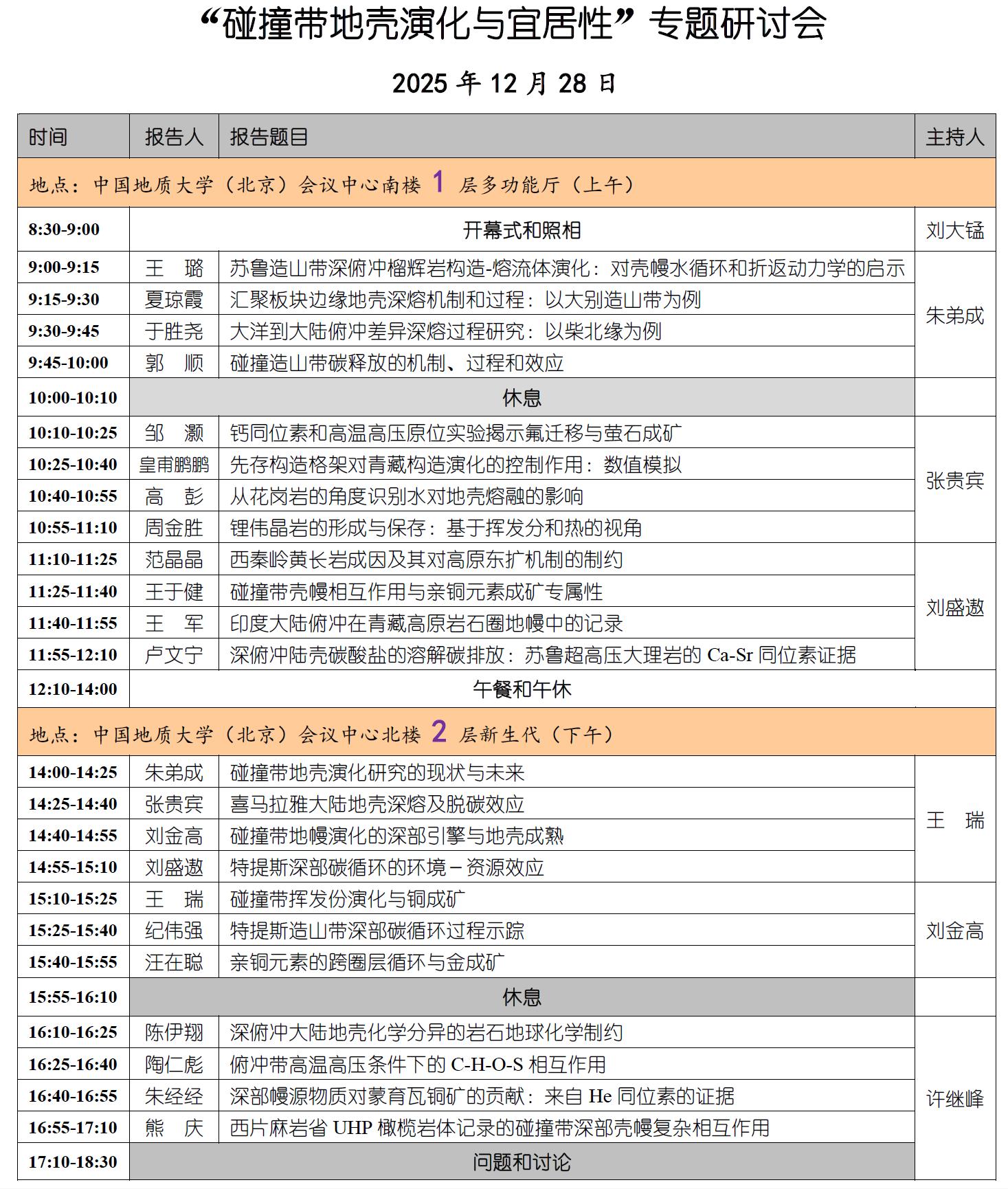研讨会地点:中国地质大学(北京)国际会议中心南楼1层多功能厅(上午)、北楼2层新生代(下午)