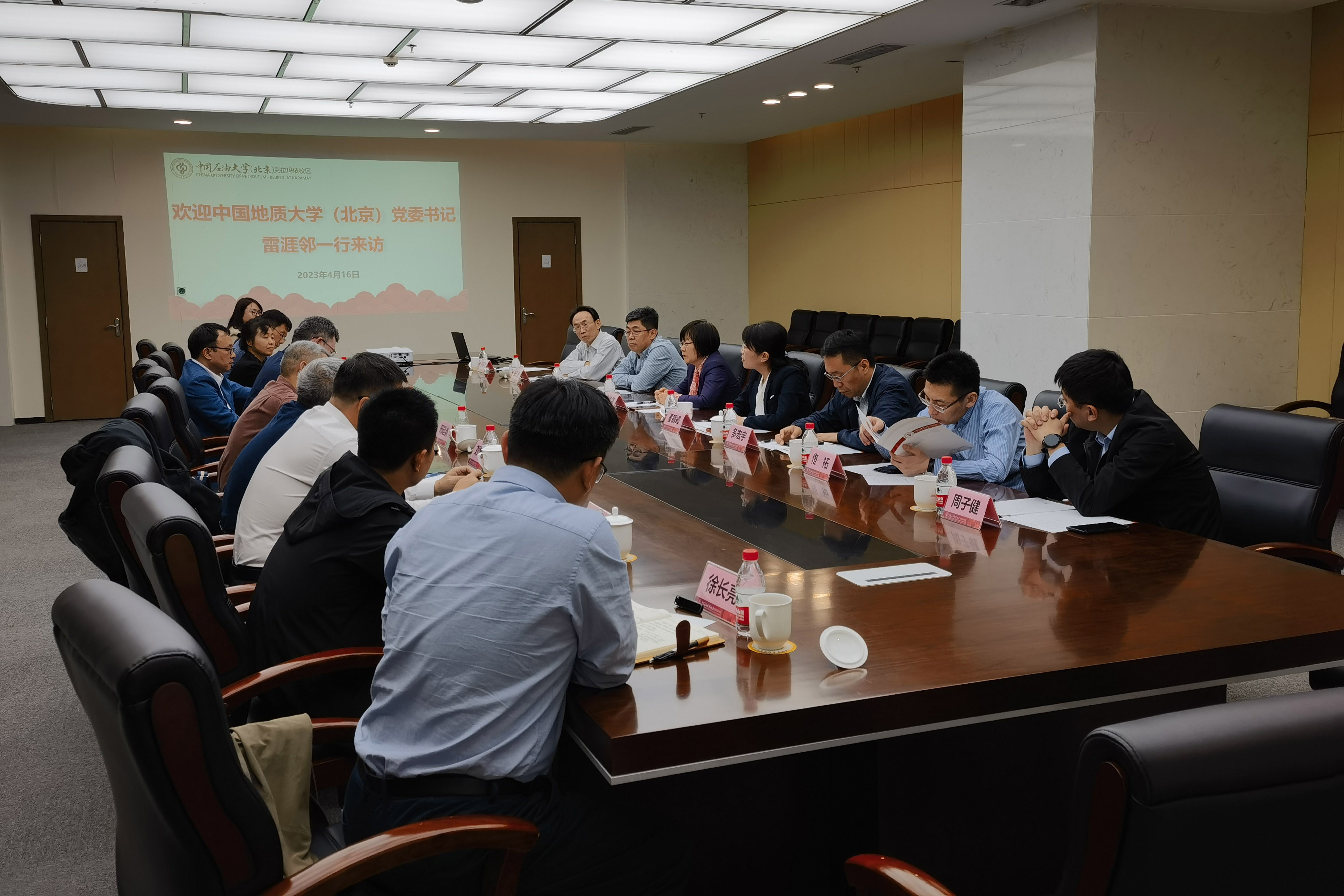 杨立强对雷涯邻一行到访表示欢迎,对我校师生勤奋务实、勇于创新的优秀品格高度赞赏,表示中国地质大学(北京)是石油工业重要的人才摇篮,双方合作取得了一系列重要成果。希望校企双方紧密围绕油气和新能源业务,进一步深化战略合作,联合攻关关键技术难题,共同提升产学研一体化水平;加深人才建设交流,为双方发展提供坚实的人才支撑。