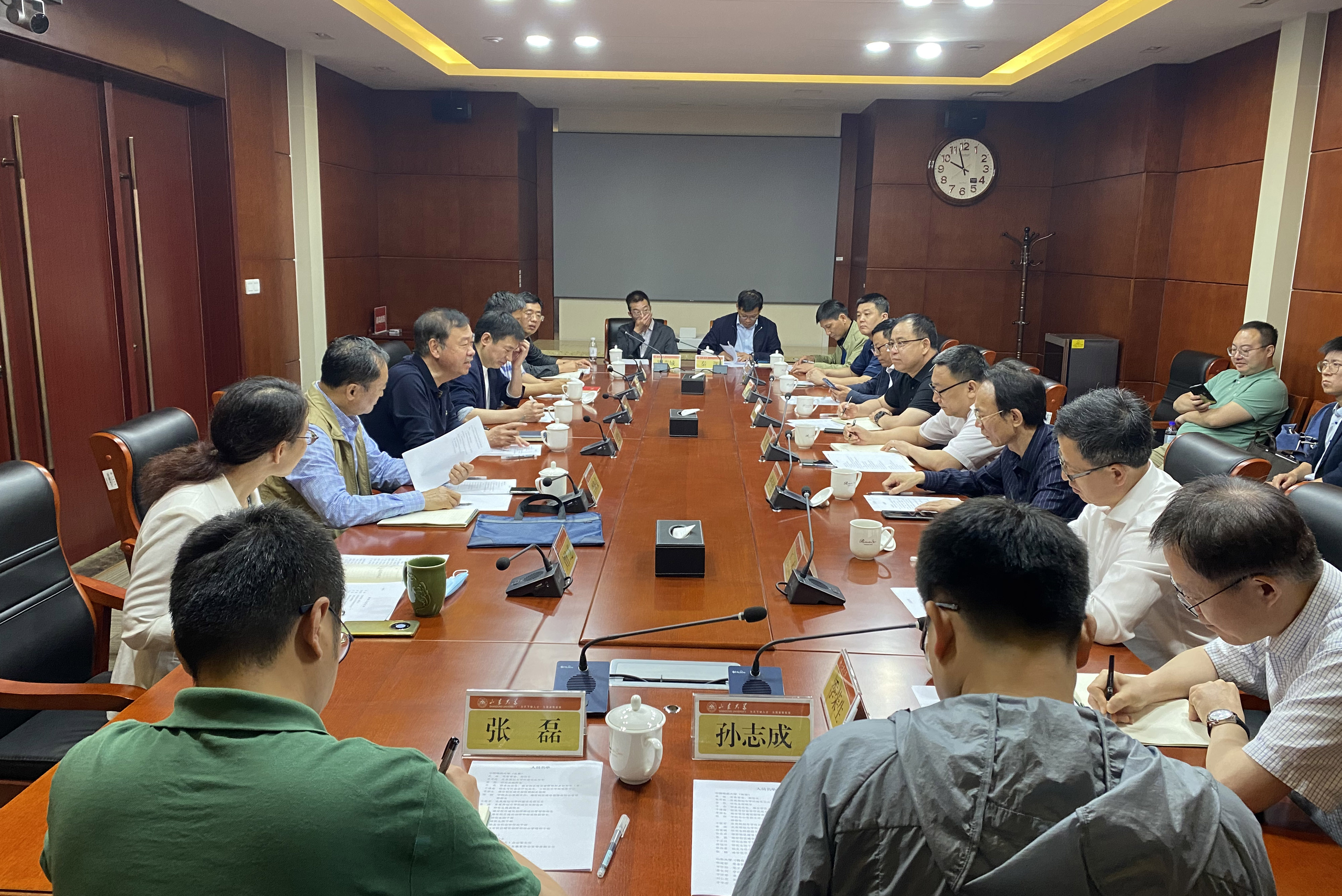 在山东大学(青岛),常务副校长韩建新与武雄一行座谈交流,韩建新及相关部门负责人介绍了学校发展概况、“双一流”建设、研究生教育管理等相关情况。
