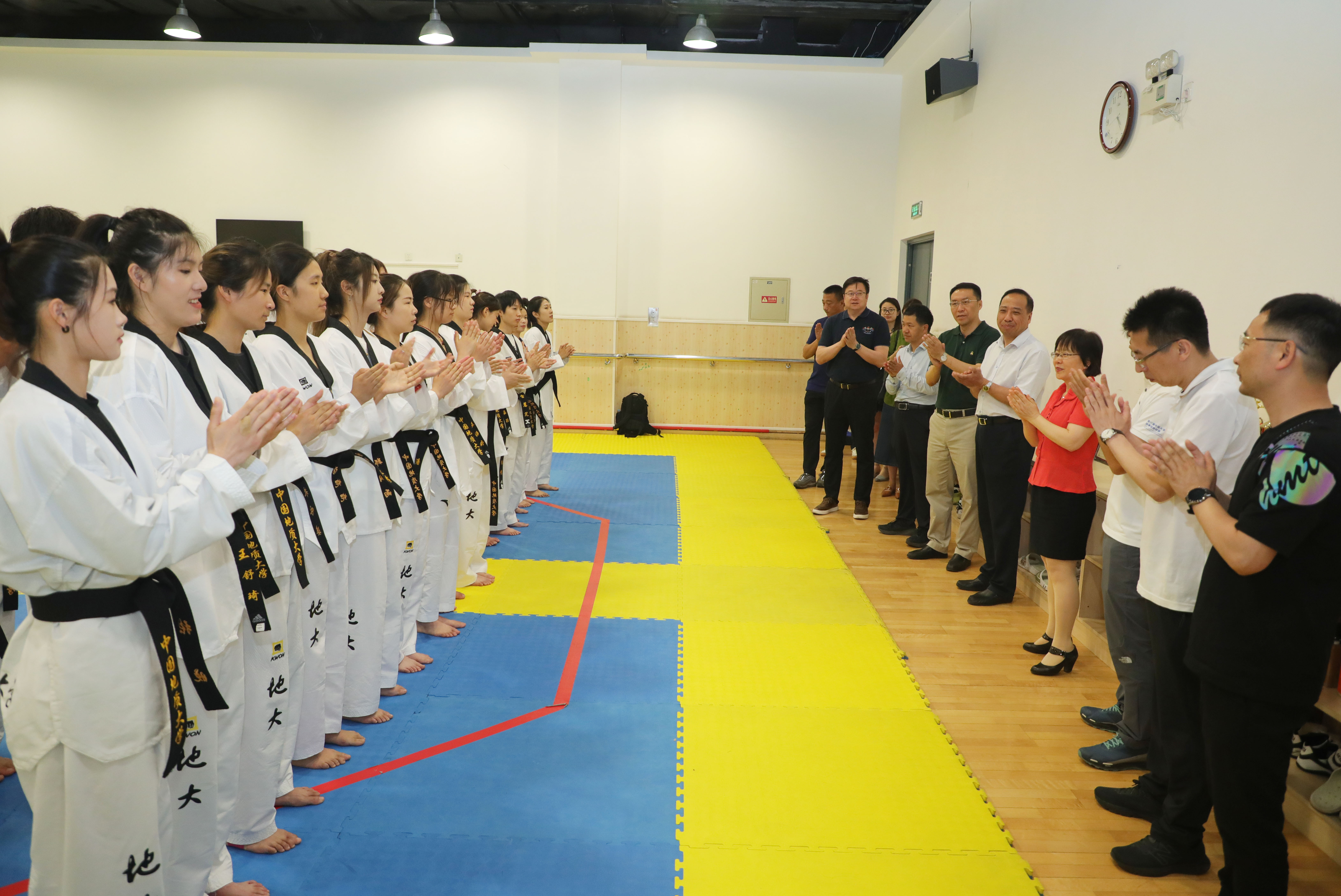 场馆内,雷涯邻、赵志丹一行同运动员、教练员亲切交流,了解他们在队伍建设、日常训练和成果荣誉等方面的情况。雷涯邻对我校跆拳道高水平运动队历年来取得的成绩表示充分肯定,向辛苦付出的老师、同学们致以祝贺,也预祝即将代表中国参加世界大学生运动会的队员,在更大的赛场上展现出地大学子的精神风貌、体育道德和竞技水平,取得更加优异的成绩。