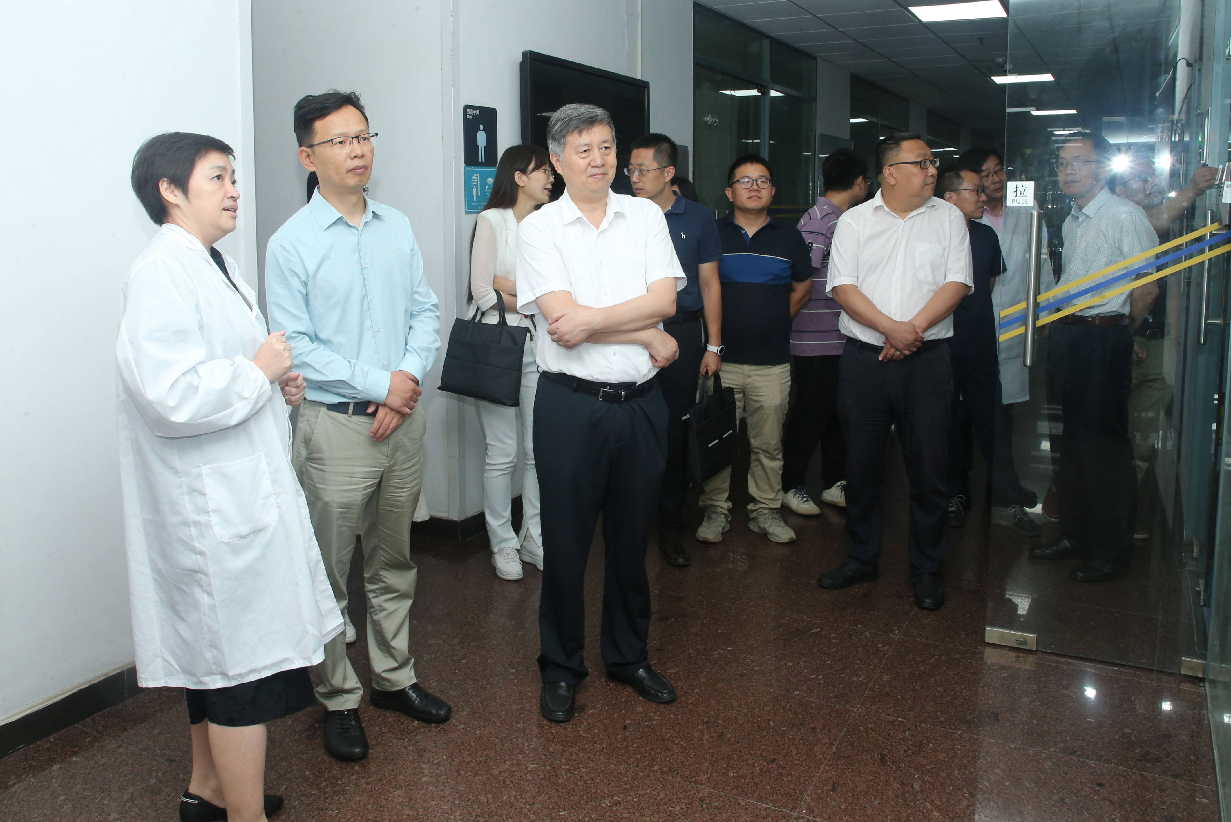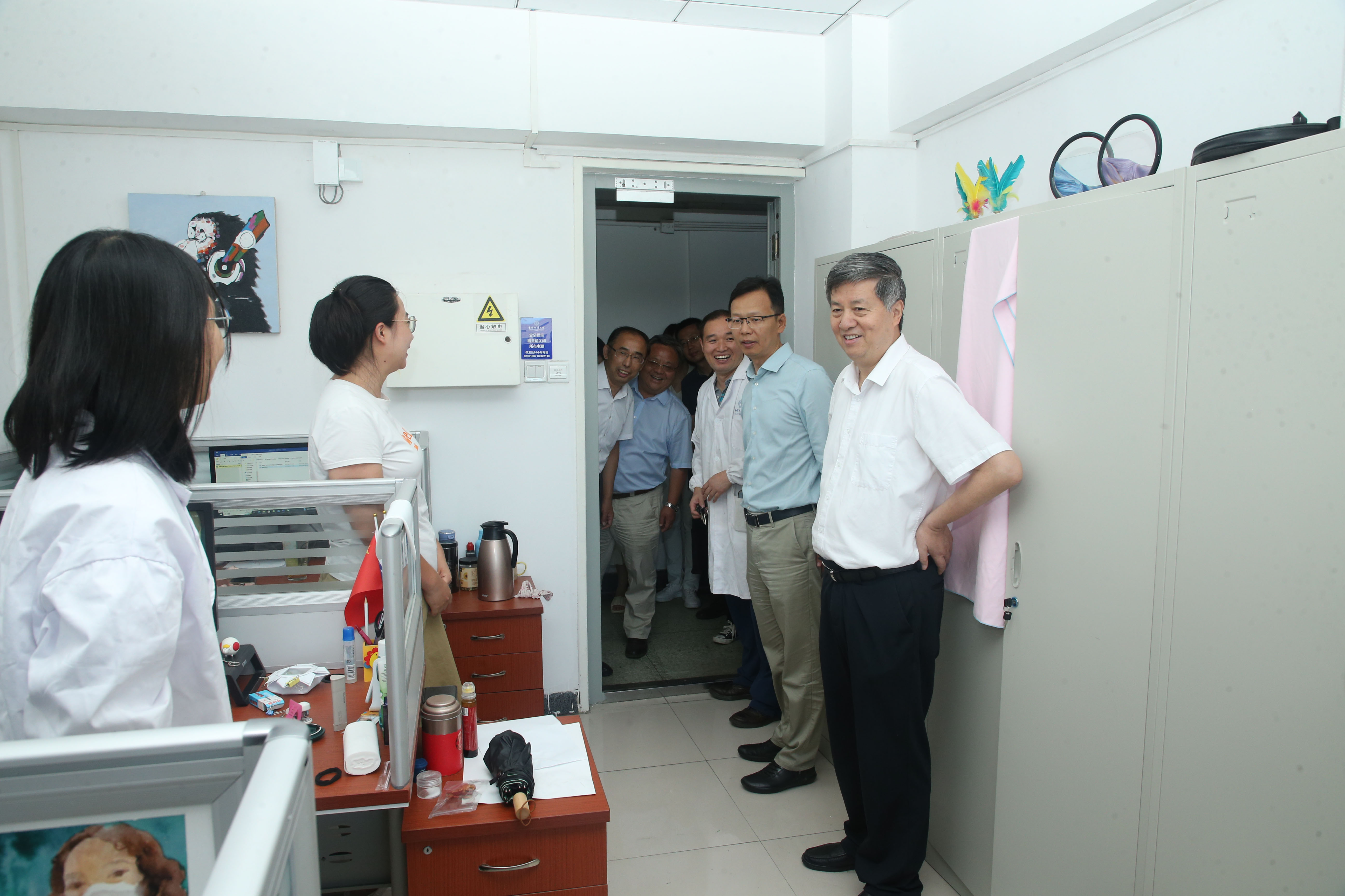 赵俊强一行随后来到逸夫楼,调研国家岩矿化石标本库及学校国家重点实验室的建设情况,实地逐一走访岩、矿、化石标本库,同位素地球化学实验室及表生环境与水文地球化学实验室,详细了解标本库平台运行和实验室建设情况,认真听取了有关重点研究方向及代表性成果的介绍,并与相关负责同志和科研人员进行深入交流。