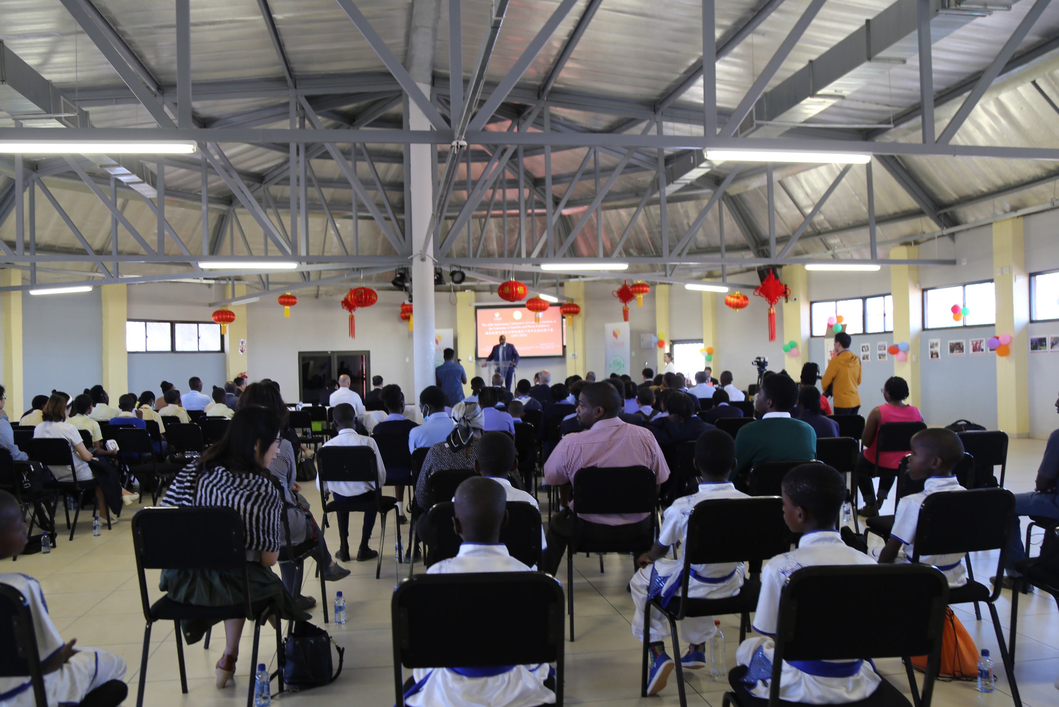 我校代表团成员、纳米比亚在我校的毕业校友、纳大师生、纳大孔院中小学教学点校长及学生代表、中国援纳医疗队队员、圆觉私立学校师生等200余人参加庆典。