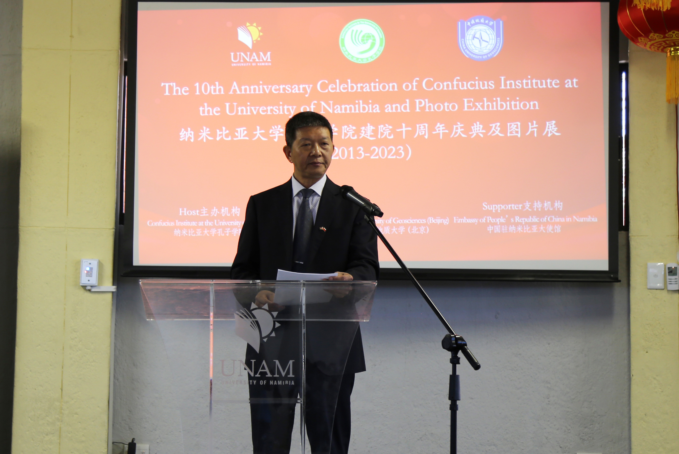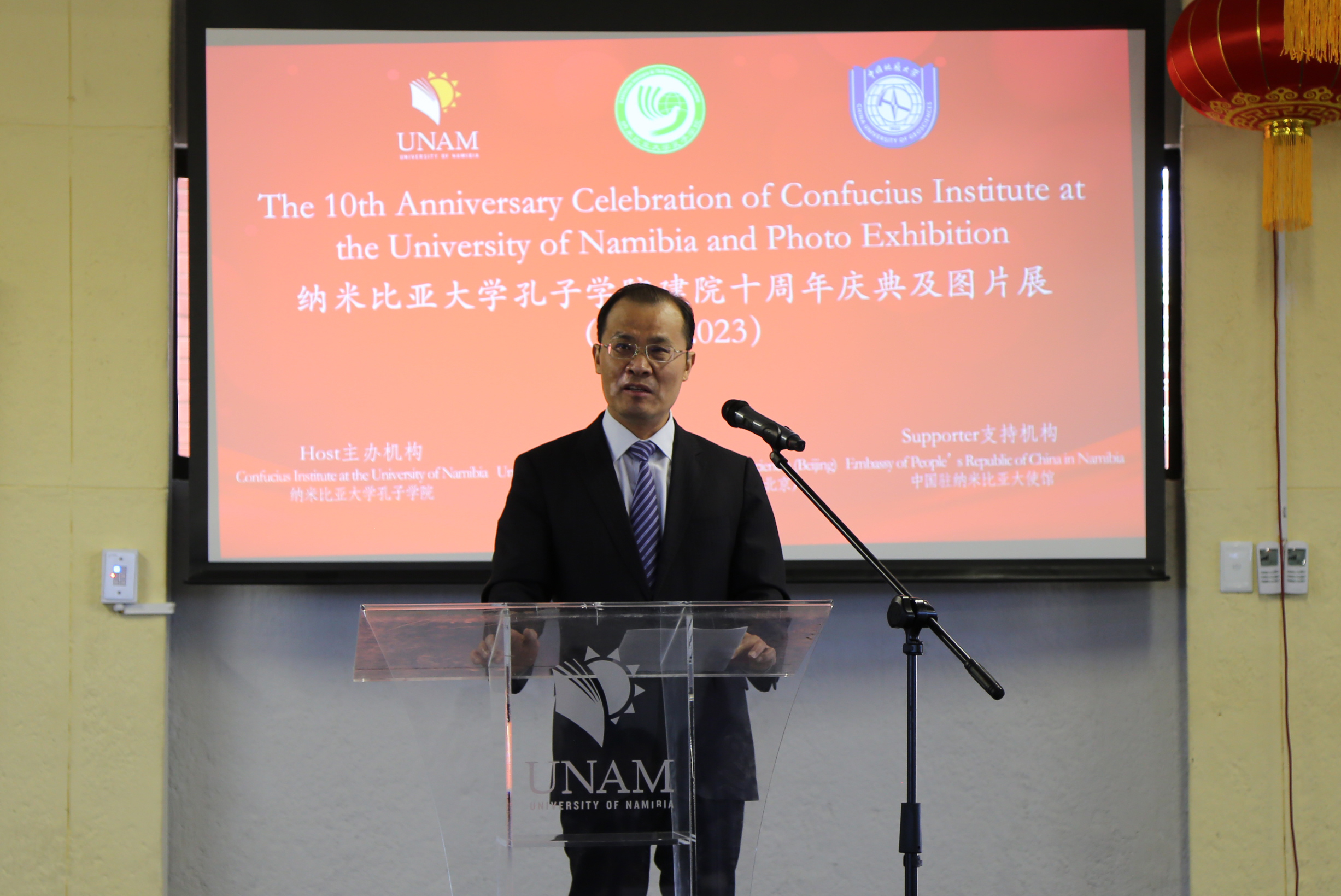 中国驻纳米比亚大使赵卫平在讲话中表示,纳大孔院是中纳文化和教育交流的里程碑,是中纳人民交流的桥梁。纳大孔院建院十周年开启了中纳文化交流的新篇章。