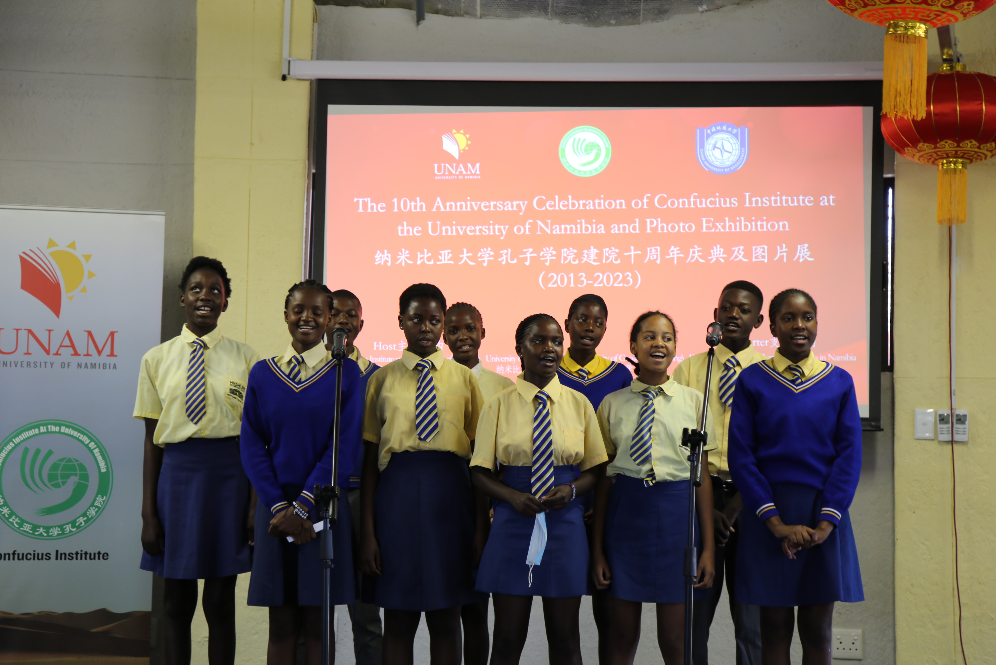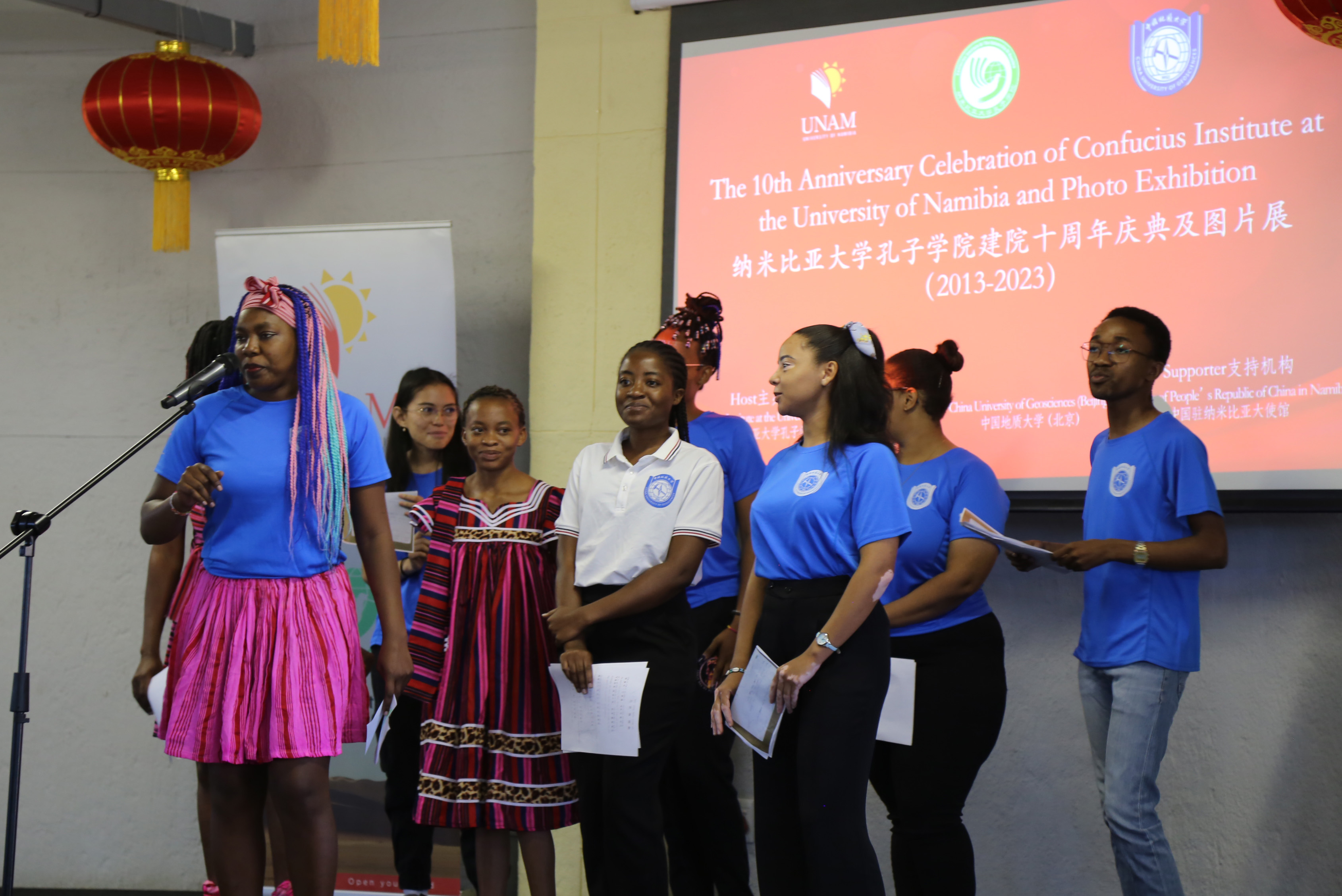 此次庆典活动还设置了纳大孔院建院十周年图片展,展图回顾了我校与纳米比亚大学的合作历程、展示了纳大孔院近年来的发展成果,吸引现场师生驻足观看。