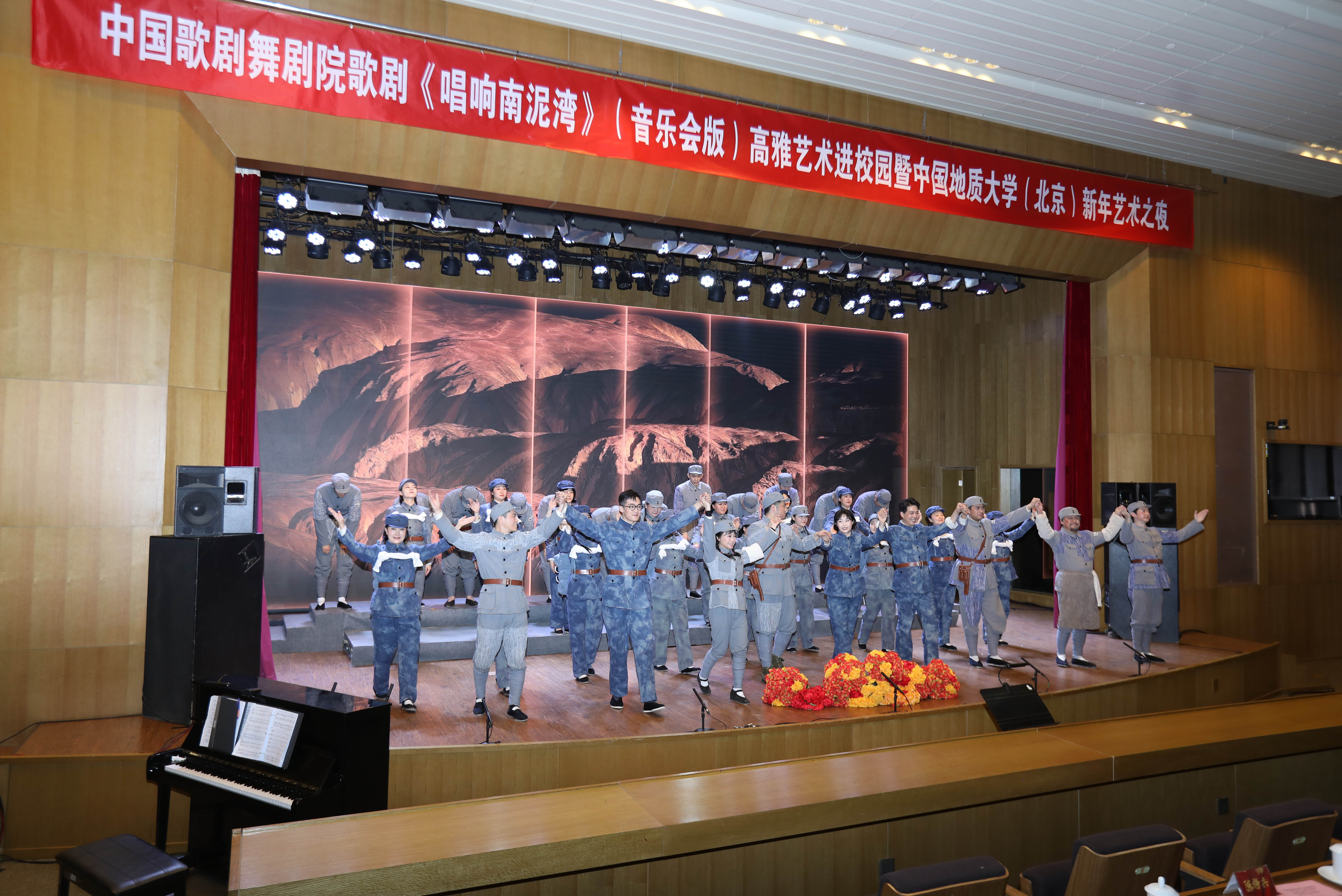 1月2日,中国歌剧舞剧院歌剧《唱响南泥湾》(音乐会版)高雅艺术进校园暨中国地质大学(北京)新年艺术之夜在地大国际会议中心举办。