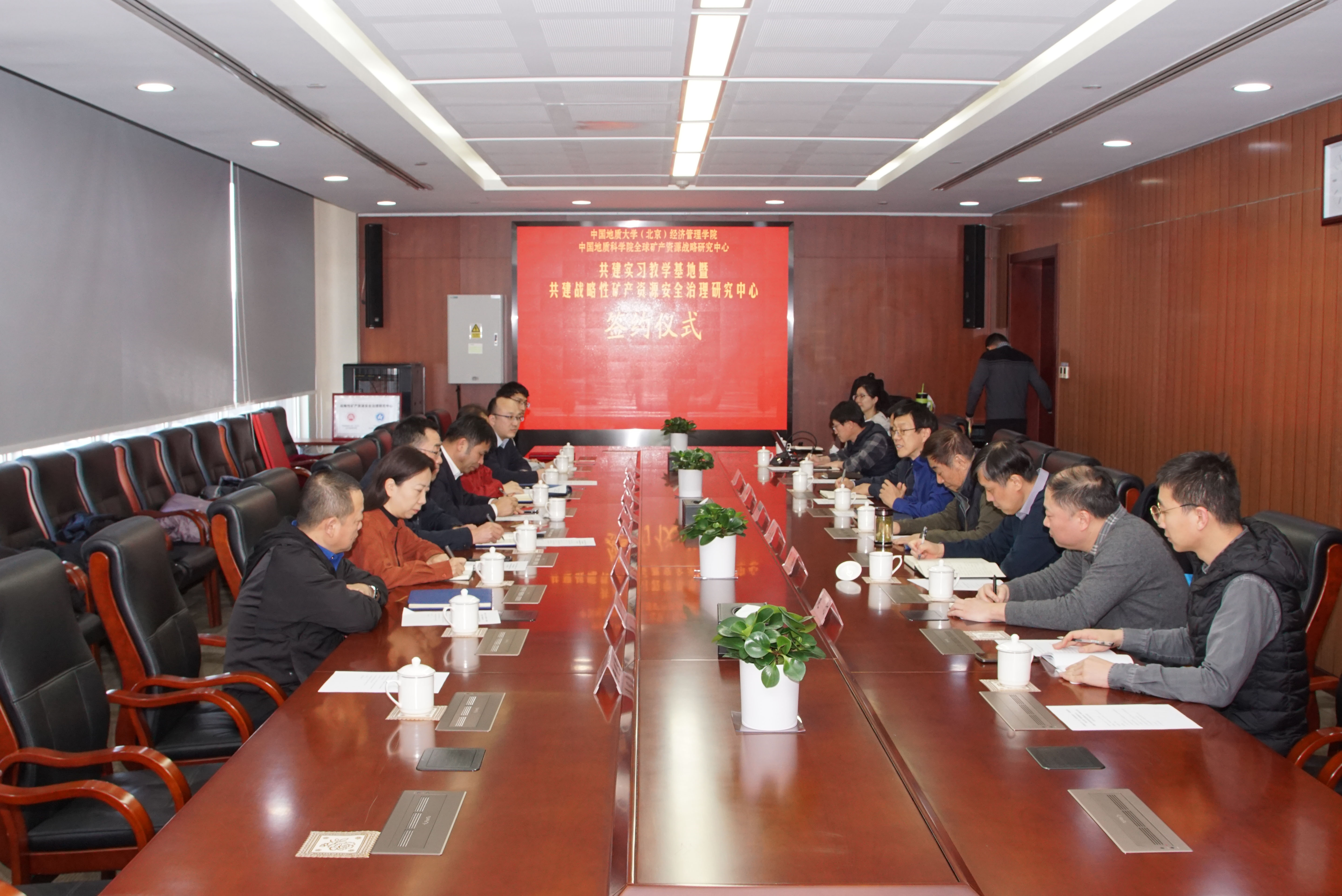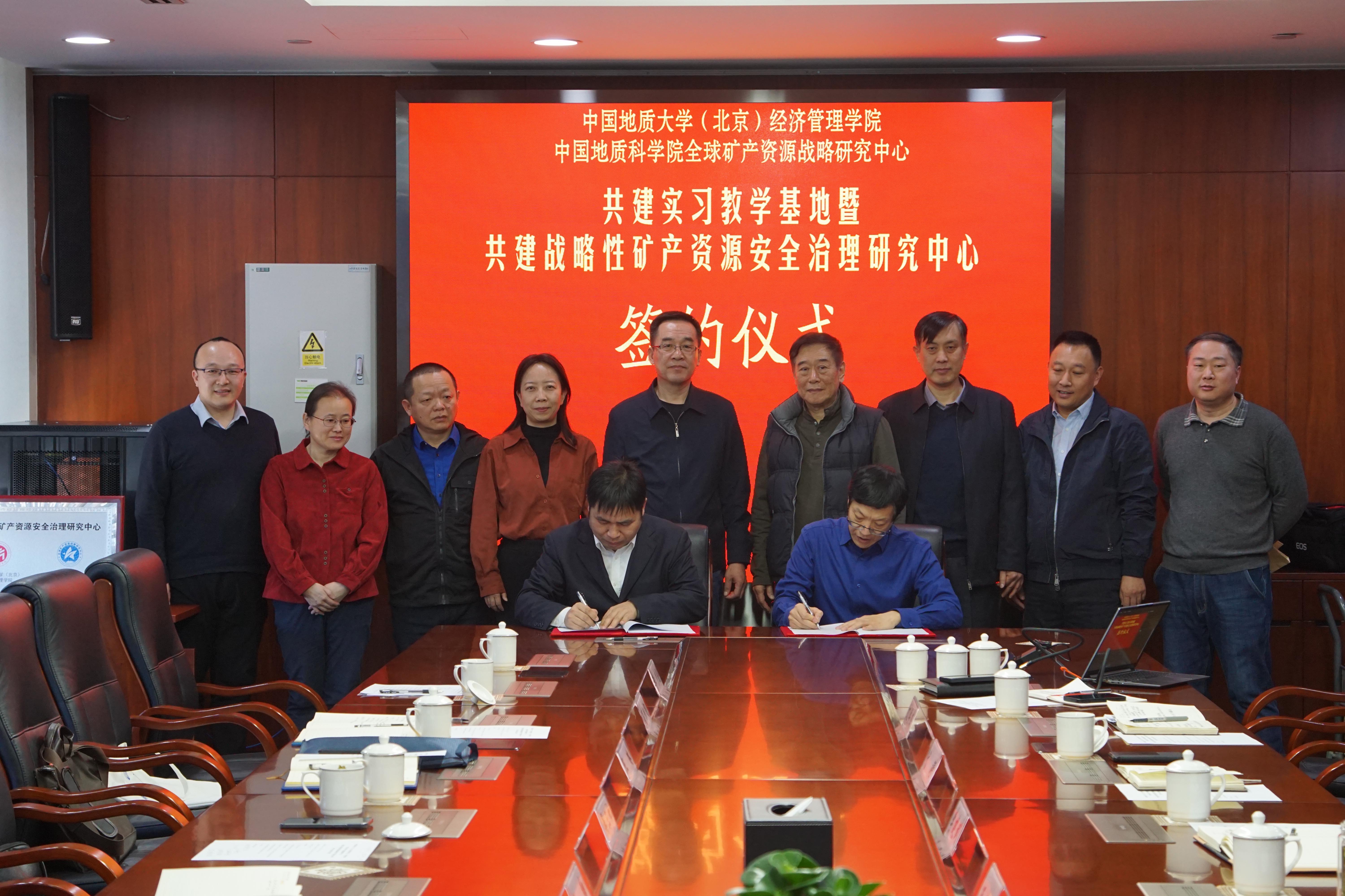 1月23日,副校长段翔带队赴中国地质科学院全球矿产资源战略研究中心(以下简称“战略研究中心”)开展访企拓岗并签署合作协议。战略研究中心名誉主任、首席科学家王安建,副主任(主持工作)李建武,副主任闫强,基础矿产战略研究室主任柳群义,情报研究室主任赵汀,新兴矿产战略研究室主任代涛,我校党委常委、副校长段翔出席会议,经济管理学院党委书记孙敬、院长吴三忙和相关工作负责人参加会议。