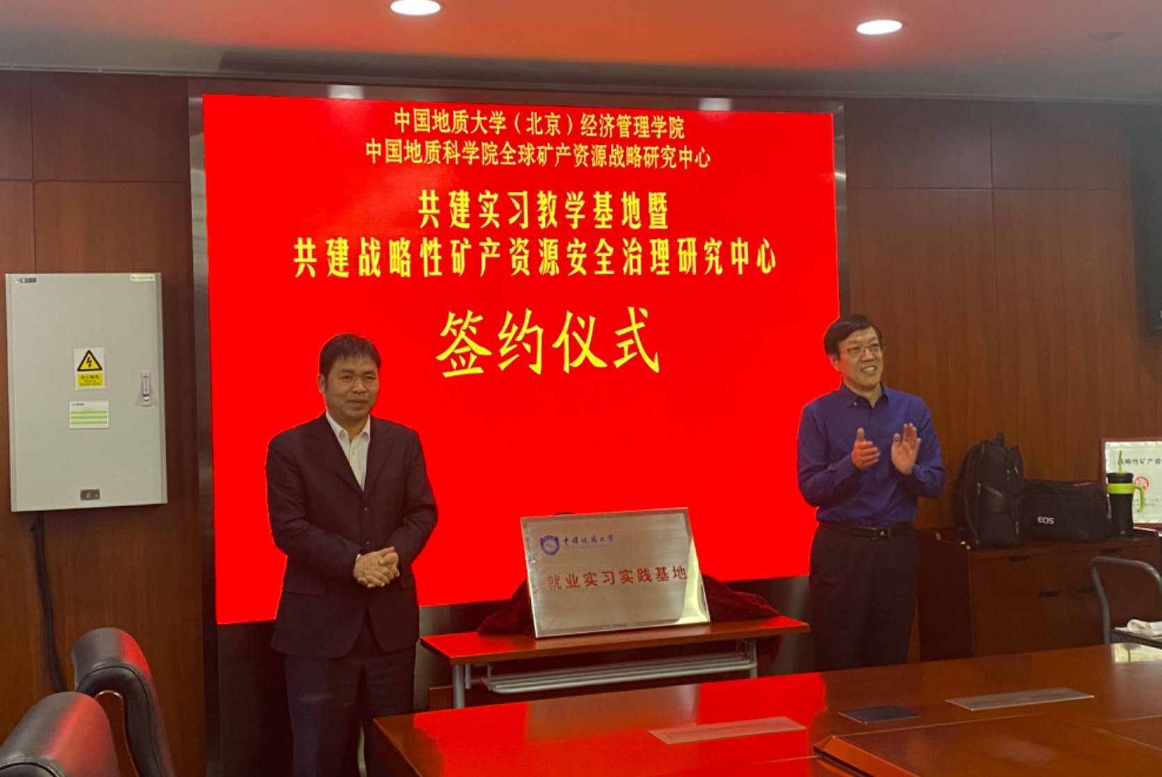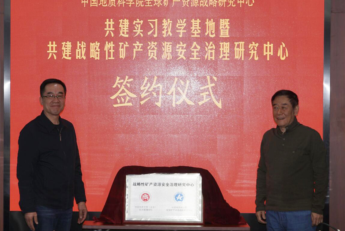 会上,段翔和王安建共同为战略性矿产资源安全治理研究中心揭牌。吴三忙和李建武代表双方签署了共建实习教学基地合作备忘录和共建战略性矿产资源安全治理研究中心协议,并共同为中国地质大学(北京)就业实习实践基地揭牌。