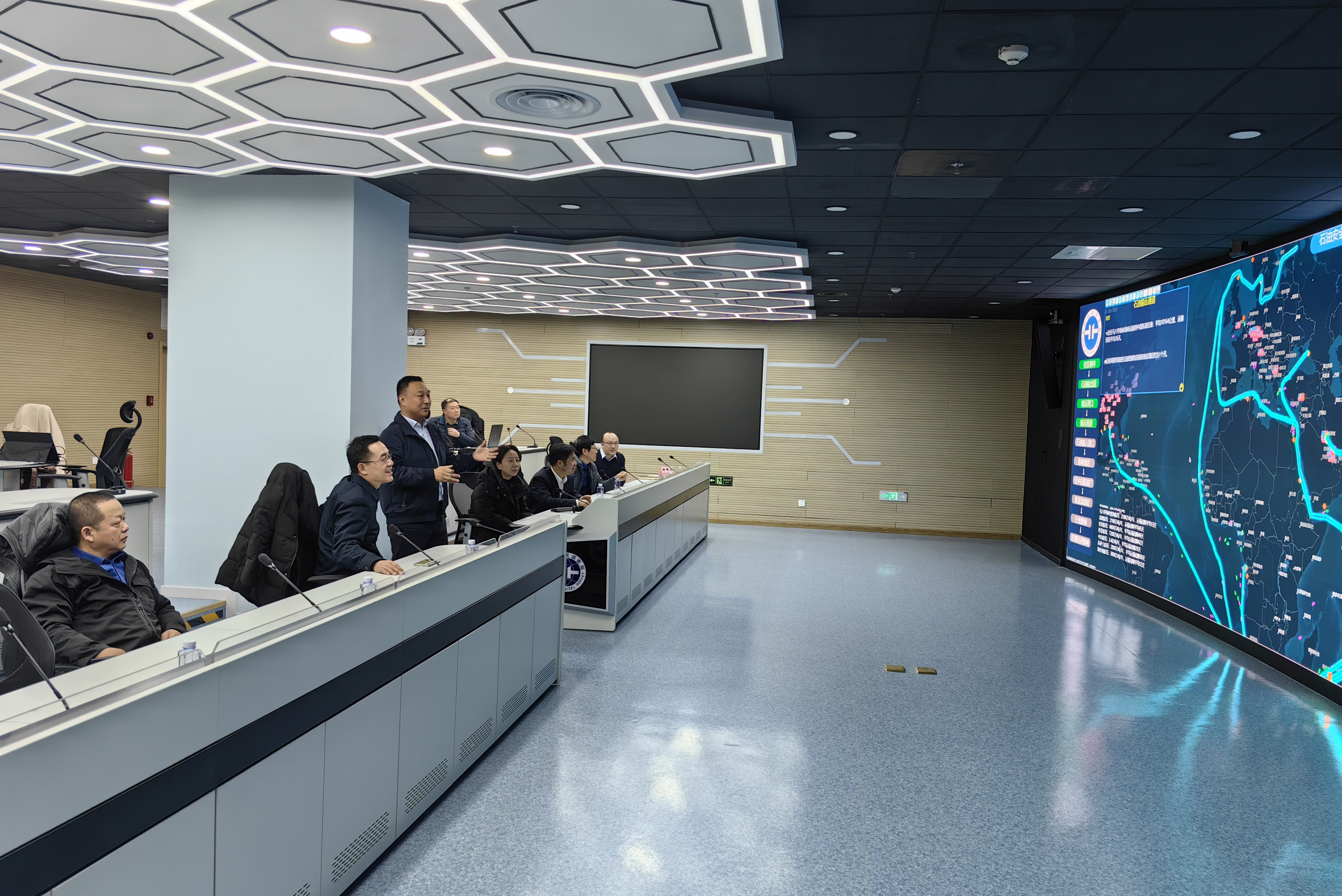 会后,与会人员共同参观了石油安全数字沙盘实验室。