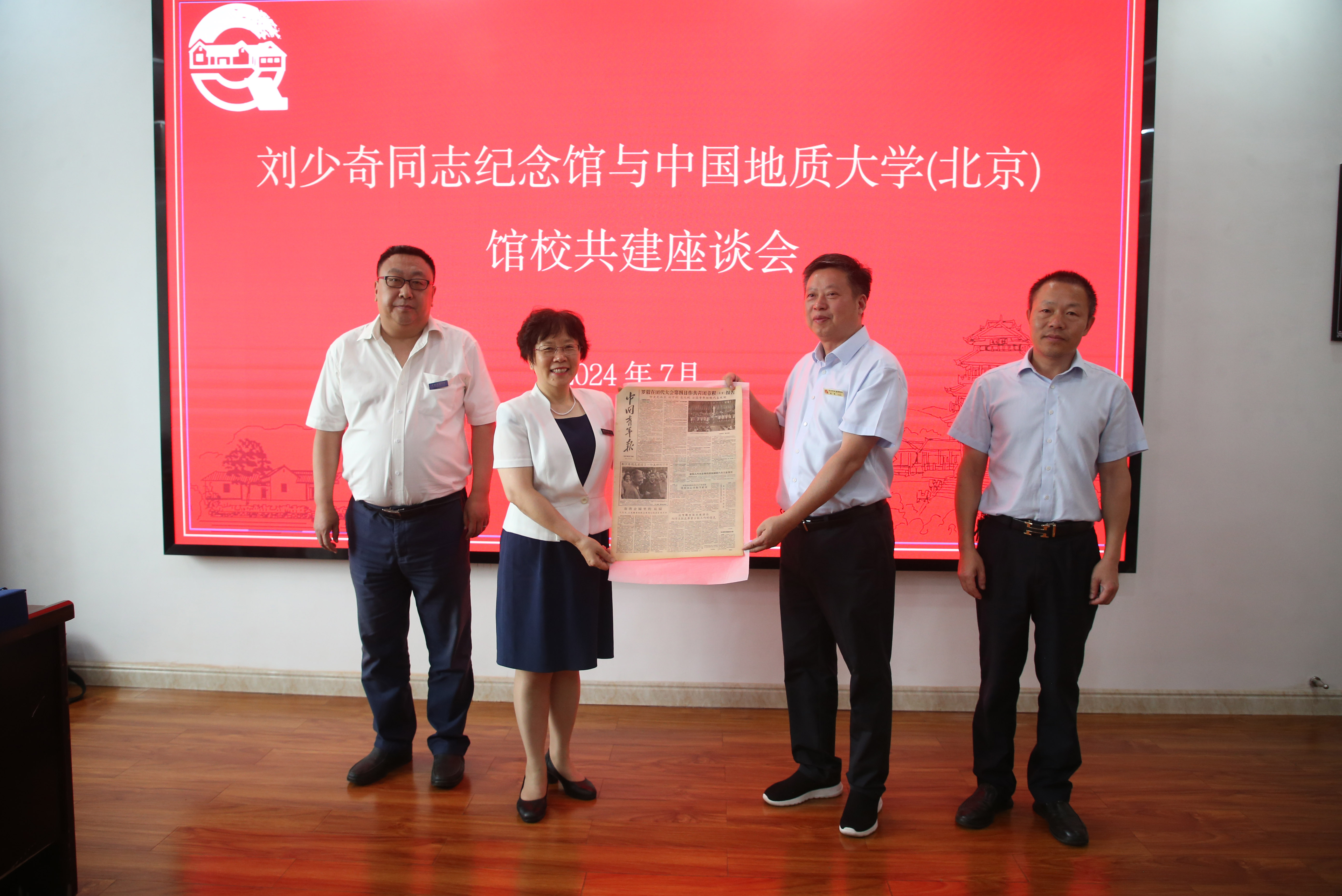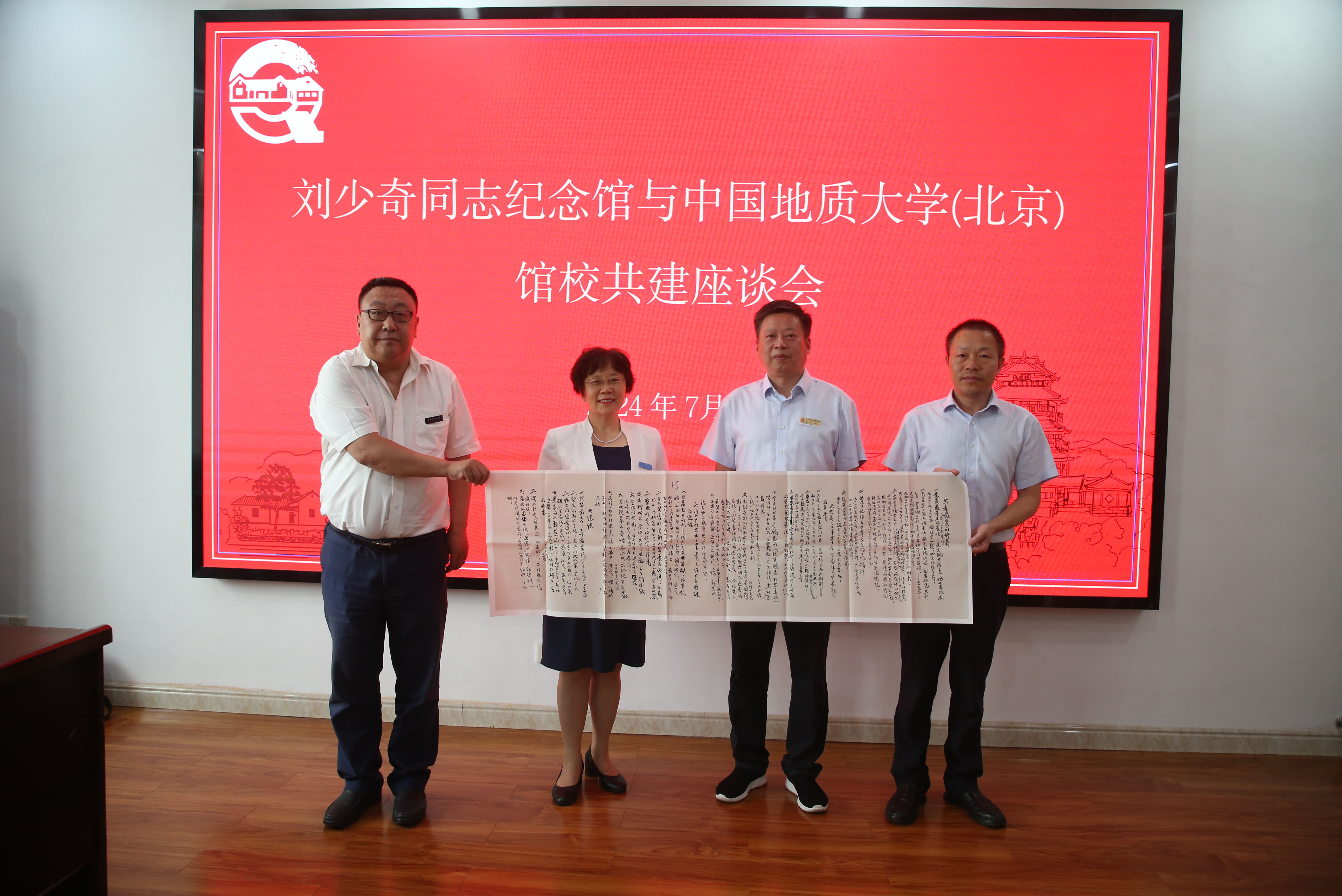 会上,雷涯邻首先介绍了学校的基本情况,并回顾了刘少奇同志与我校的深厚渊源。她说,刘少奇同志在中南海接见我校应届毕业生代表,这是地大历史乃至新中国地质行业发展史上极为光辉的一笔,对广大地质人的鞭策鼓舞影响至今。雷涯邻对刘少奇同志纪念馆支持制作我校毕业生送给刘少奇的矿物标本仿制件表示衷心感谢,并期待与刘少奇同志纪念馆进一步探索校馆合作模式,双向赋能,共同推进资源利用,加强在思想政治教育领域的合作,落实“大思政课”的育人功能,推进我校“大思政课”建设高质量发展。