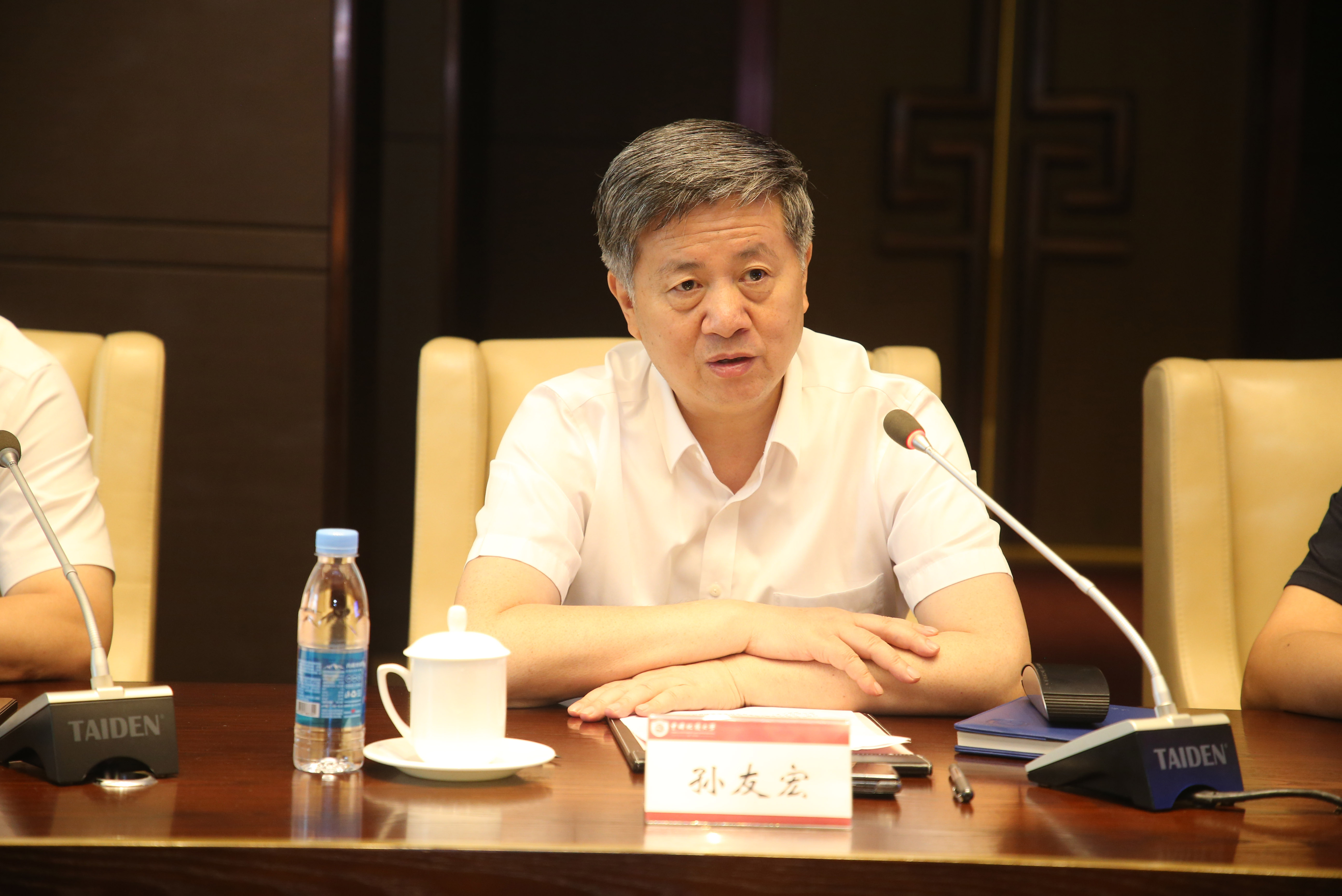 7月12日上午,全国人大代表、中国石油化工股份有限公司中原油田分公司执行董事、党委书记、分公司代表张庆生一行来访我校座谈交流并签署战略合作协议。校长、中国工程院院士孙友宏出席会议并讲话,中原石油分公司副总经理、总地质师段金宝,我校党委常委、副校长武雄代表双方签订战略合作协议。党委常委、党委组织部部长、党委统战部部长多宏宇主持会议。