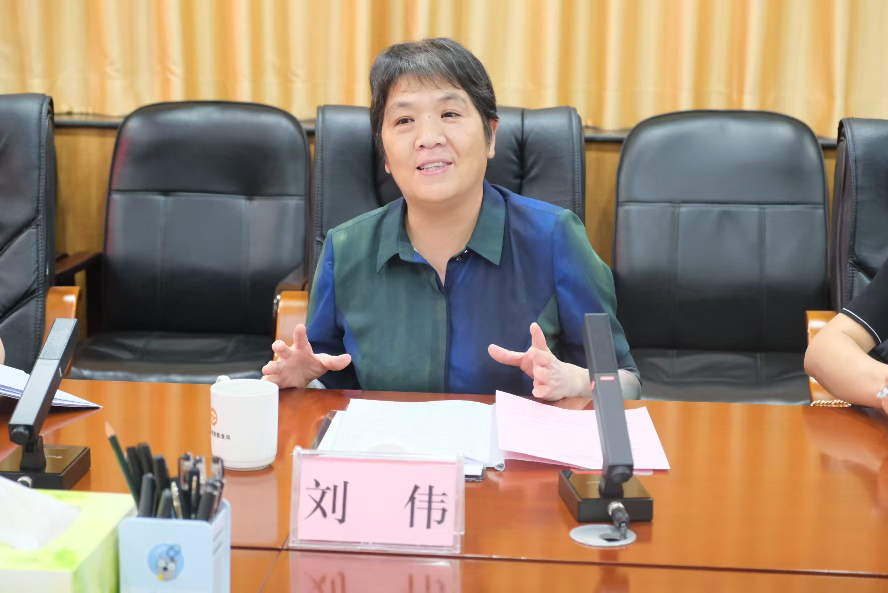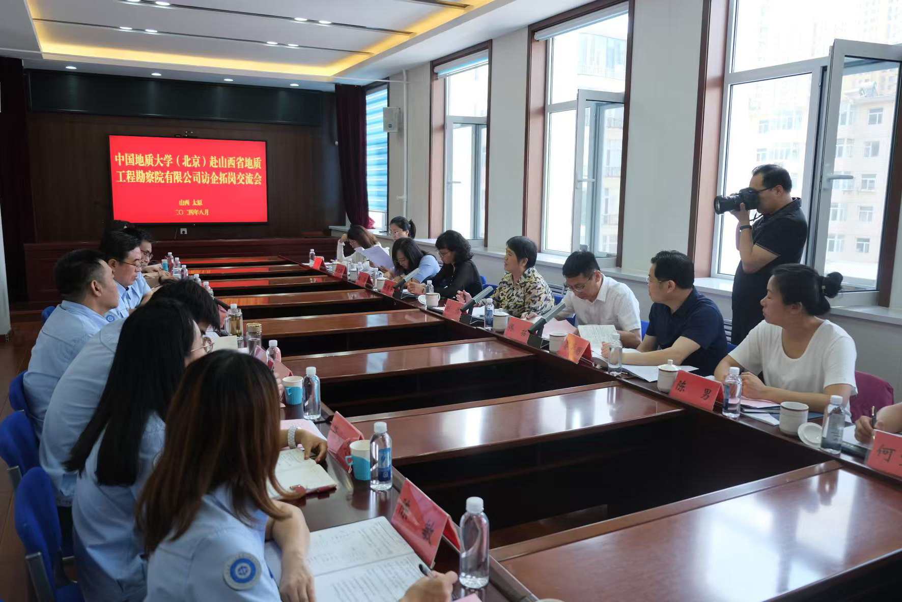 在山西省地质勘查局,局党组副书记、副局长、一级巡视员王宏伟主持座谈会并致辞,局总工程师周继华,山西地质集团总工程师姚文兵出席会议。王宏伟介绍了山西省地质勘查局的相关情况和近期成果进展,他表示,希望双方以更大力度、更实举措推进校地交流合作,在联合项目申报、关键技术攻关、定向人才培养、政产学研落地转化等方面展开全方位服务。双方就科研合作、平台共建、继续教育等内容开展了深度交流,就多个重点业务问题进行探索研究。
