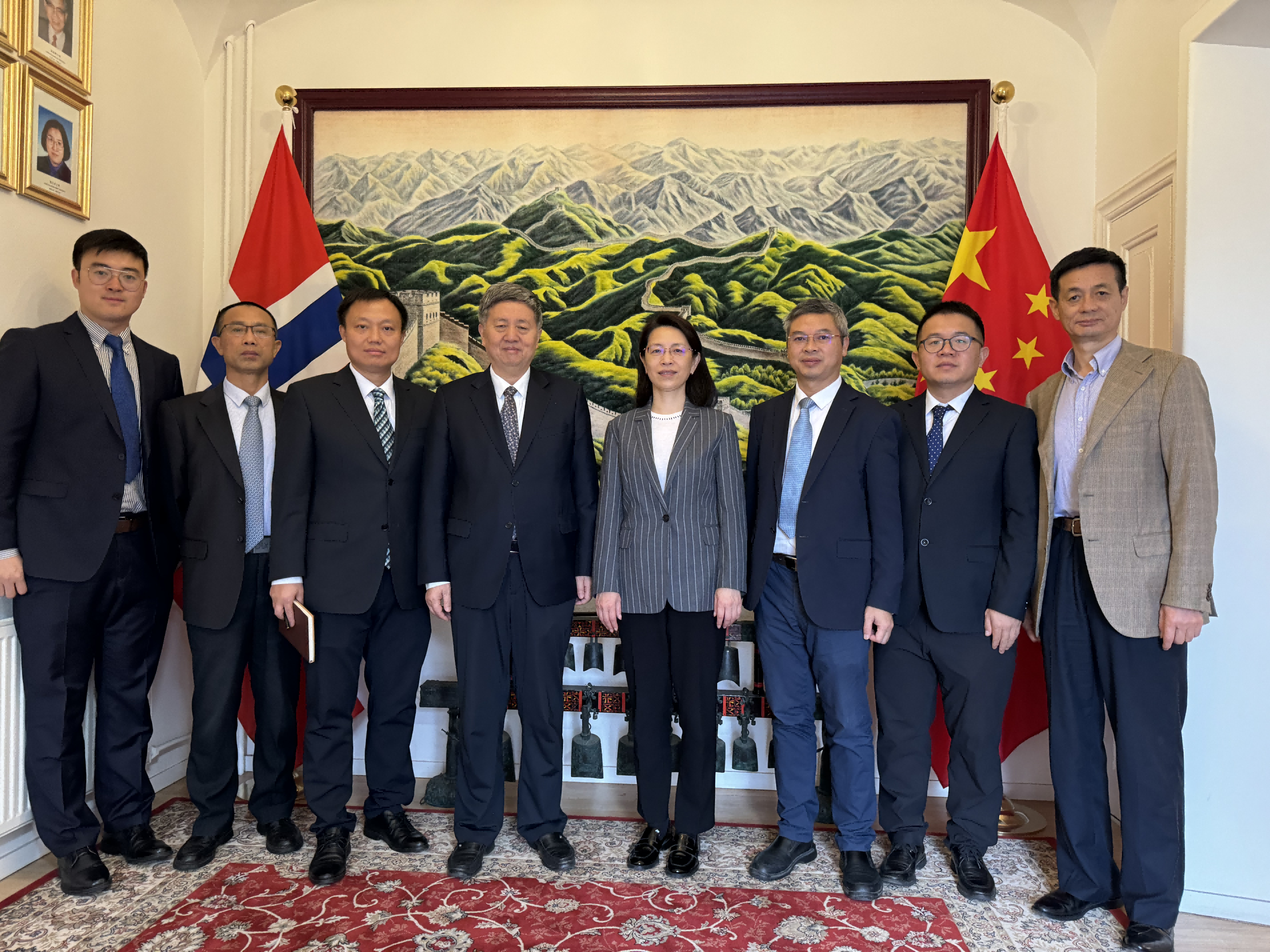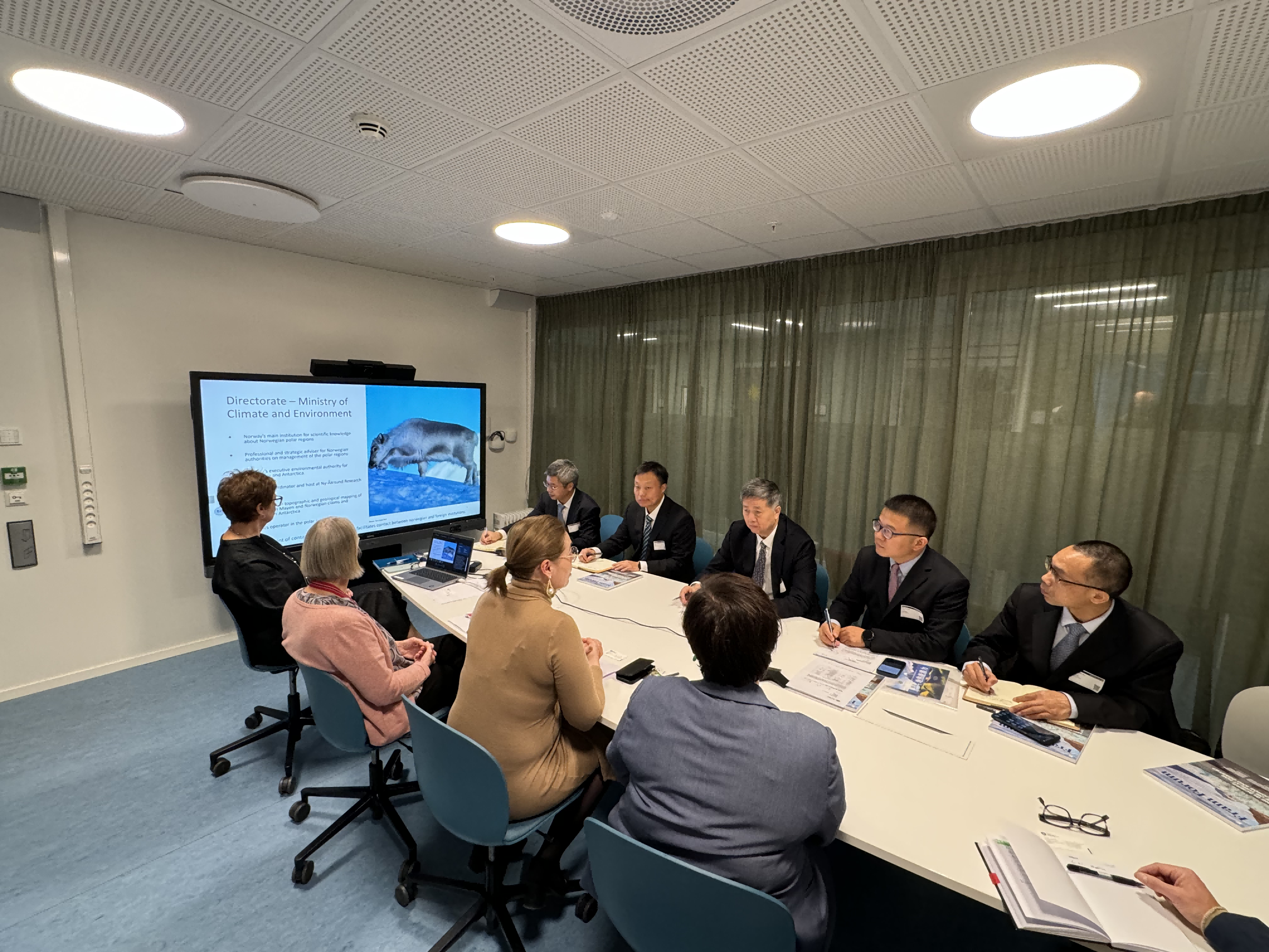 10月25日上午,代表团受邀到访中国驻挪威大使馆,与大使侯悦进行会谈。侯悦介绍了中国和挪威在科技和人才培养方面的合作情况,并指出尽管现阶段国际合作面临诸多挑战和困难,中挪两国的科学与教育交流与合作仍需进一步深化,特别是在极地和深海领域。孙友宏向侯悦介绍了学校发展状况以及此行的目的,并表示希望我校与挪威研究机构的合作能收到大使馆的支持。