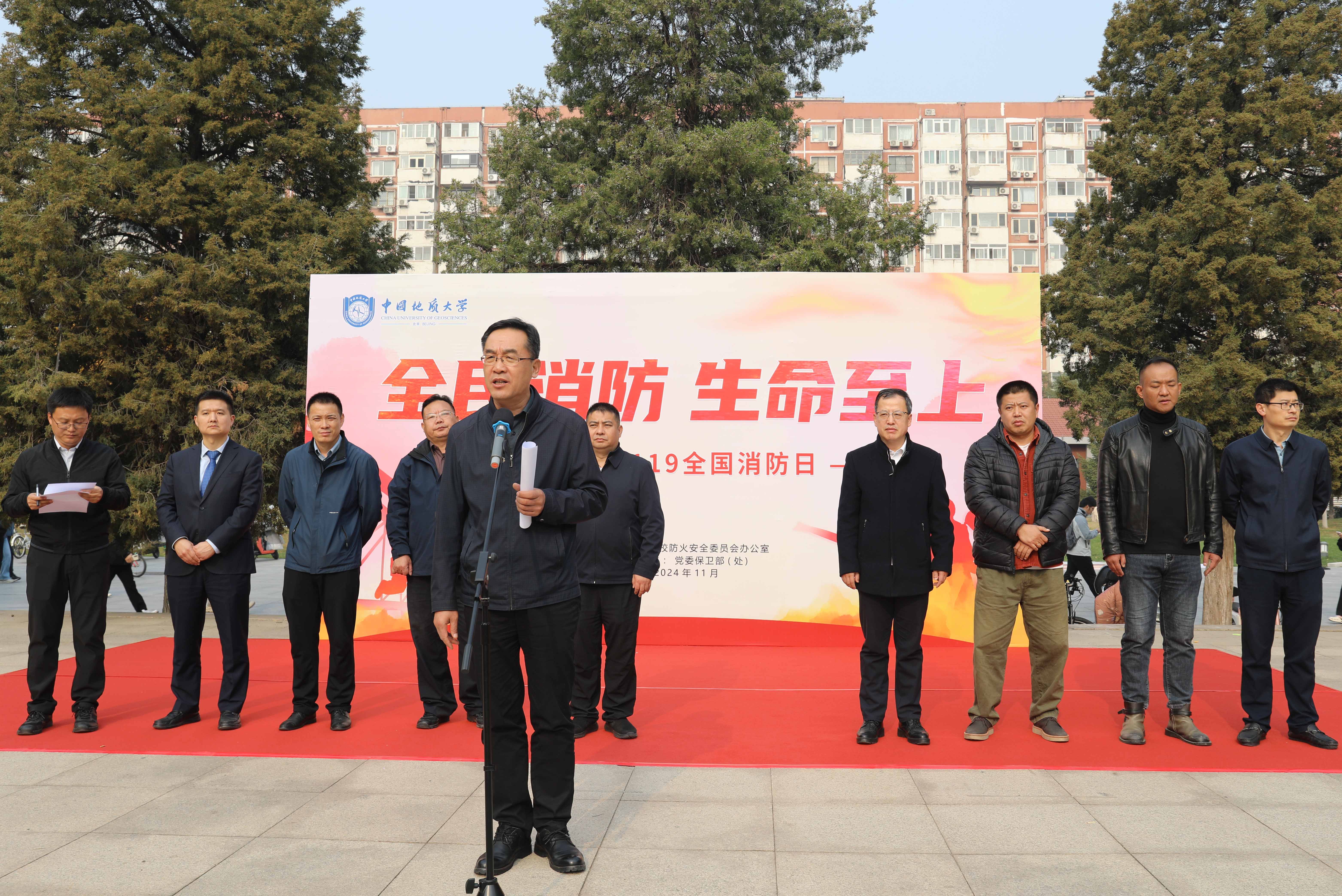 段翔在致辞中充分肯定各单位在近期消防安全工作中取得的成绩,激励参与师生要继续锲而不舍、通力协作,共创安全稳定的校园环境。同时强调消防宣传月活动不仅是对党的二十届三中全会精神和习近平总书记关于安全生产、消防安全重要指示批示精神的深入贯彻落实,更是与学校高质量发展理念相契合的重要举措。他提出,各单位、各部门要积极组织消防宣传月活动,拓展宣传空间,确保活动取得实效;要不断推动消防宣传常态化和制度化,促进消防宣传工作的深入持续开展;要落实主体责任,全面提高师生的防火意识,确保消防知识普及到每一个人。