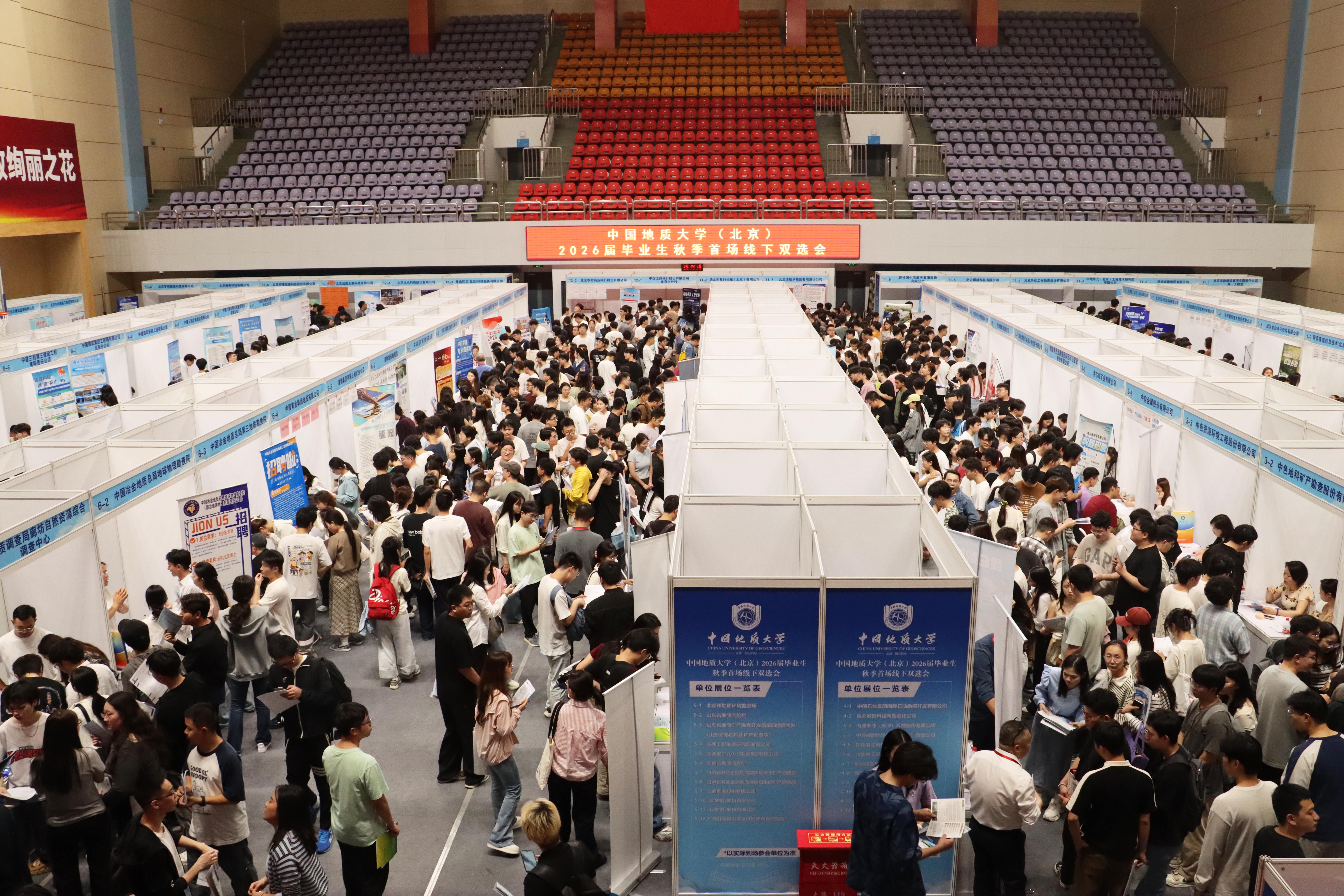 9月25日,我校2026届毕业生秋季首场线下双选会在体育馆举行。本次双选会有近140家用人单位参会,为我校毕业生提供近2万个就业岗位,吸引我校3000余人次毕业生现场参会并与用人单位积极交流。