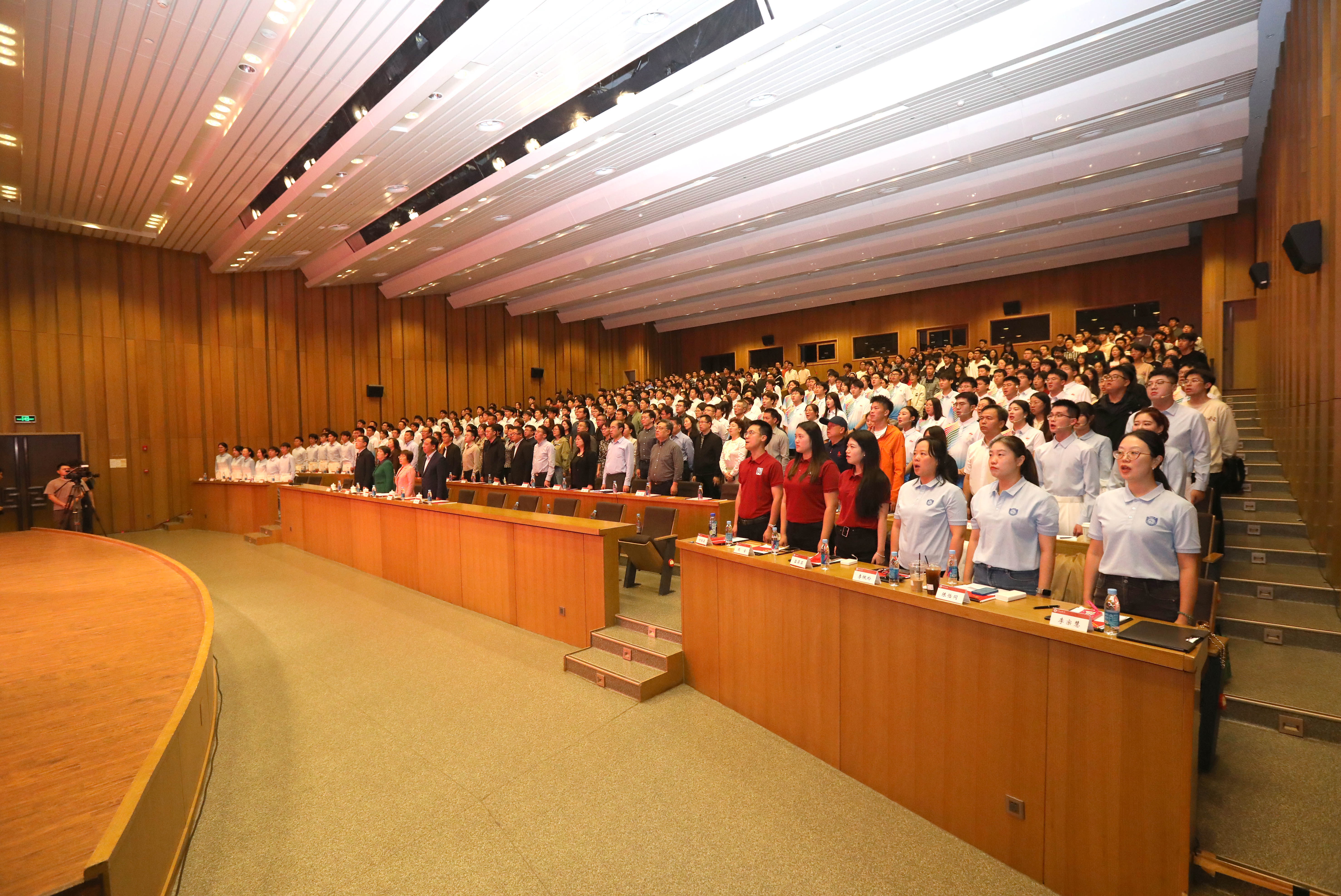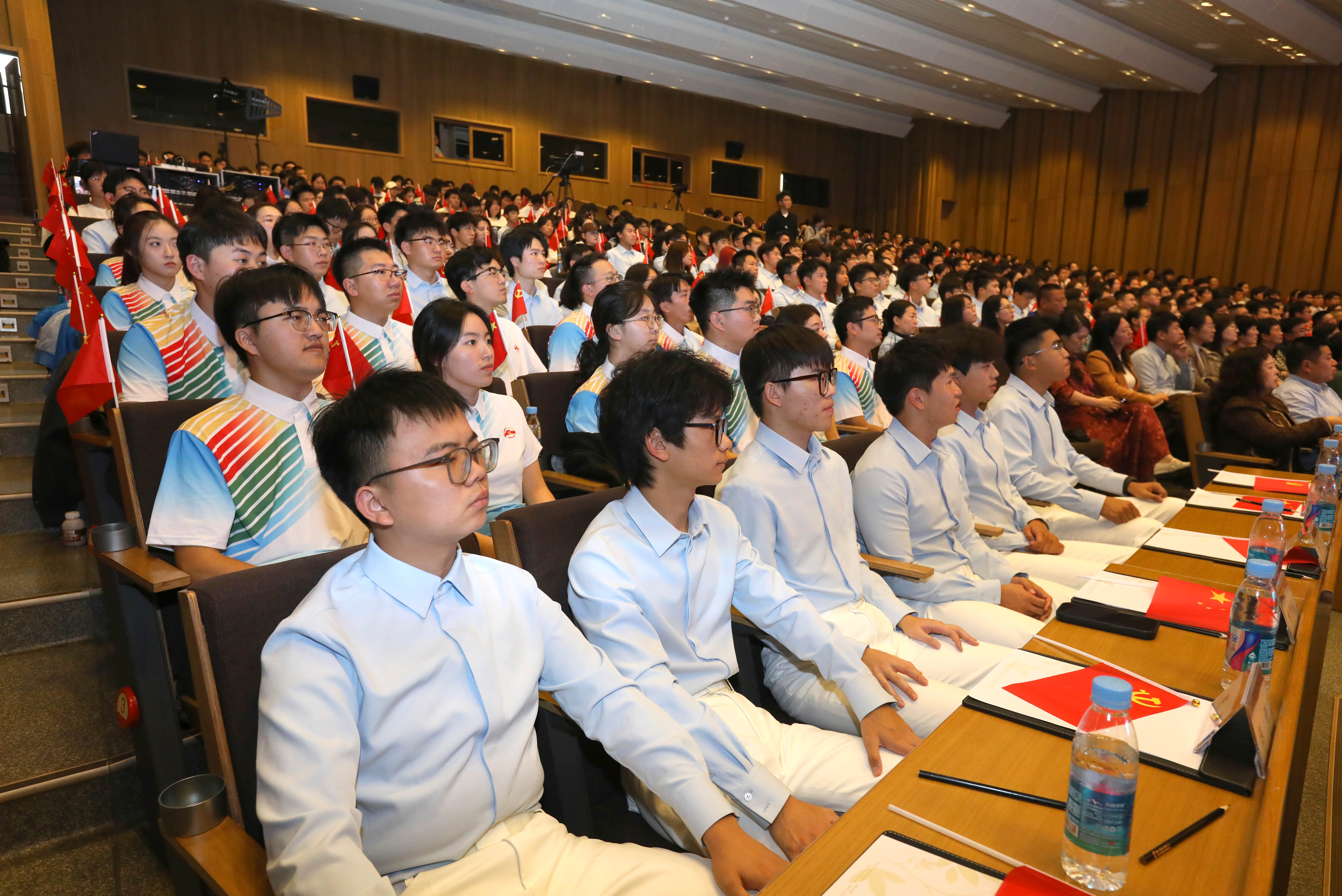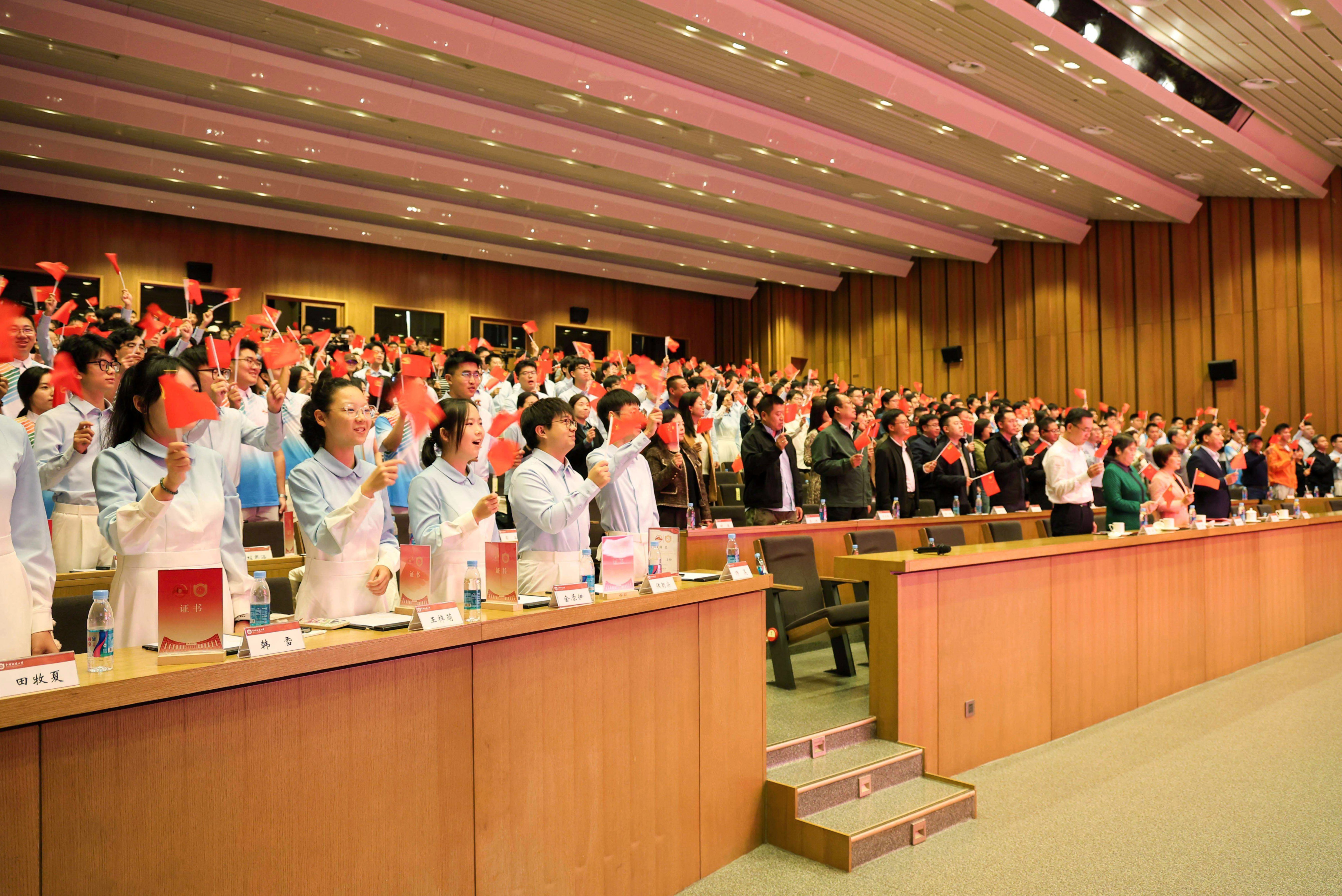 大会在激昂的《歌唱祖国》合唱声中落下帷幕,全体师生挥舞着手中的党旗和国旗,用歌声抒发对祖国的无限热爱与美好祝福。学校相关职能部门和培养单位负责同志、纪念活动广场合唱和志愿服务全体师生以及2025级新生代表共同参与了此次大会。