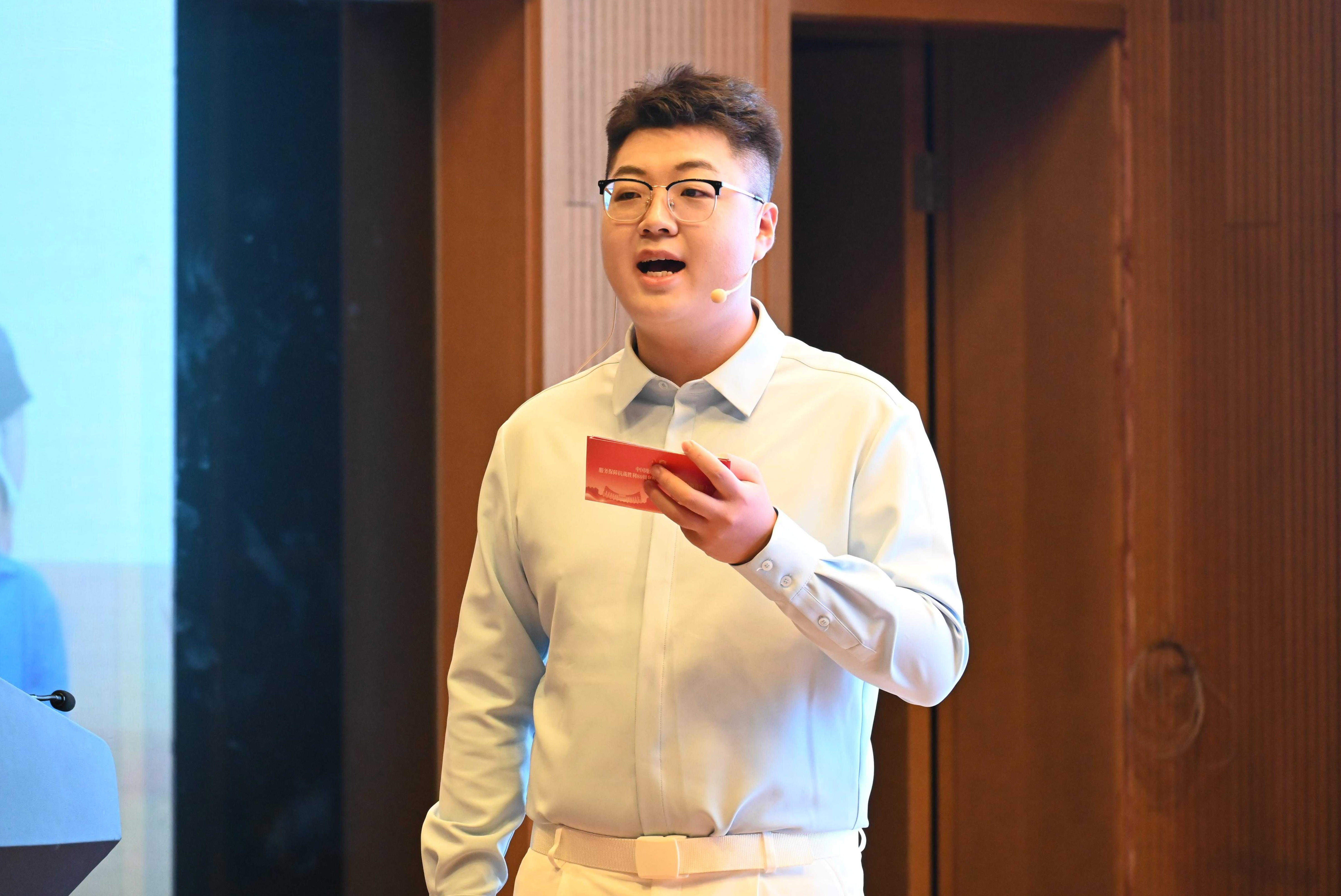 劳动人民文化宫点位志愿者代表刘玥含以《星光映初心 青春显担当》为题,讲述负责外宾接待与路线引导的特殊任务,从深夜演练的坚守到正式服务的专业,从学校保障的温暖到外宾认可的自豪,传递出青年党员以行动践行“为人民服务”初心的坚定信念。