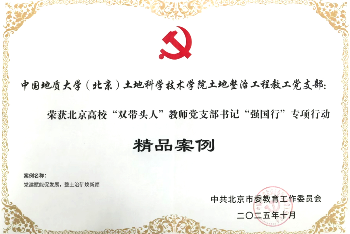 近日,北京市委教育工委举办北京高校“双带头人”教师党支部书记“强国行”专项行动示范案例交流展示会。我校土地科学技术学院土地整治工程教工党支部从92所高校的233个案例中脱颖而出,入围20个现场交流展示案例,并荣获“精品案例”称号。