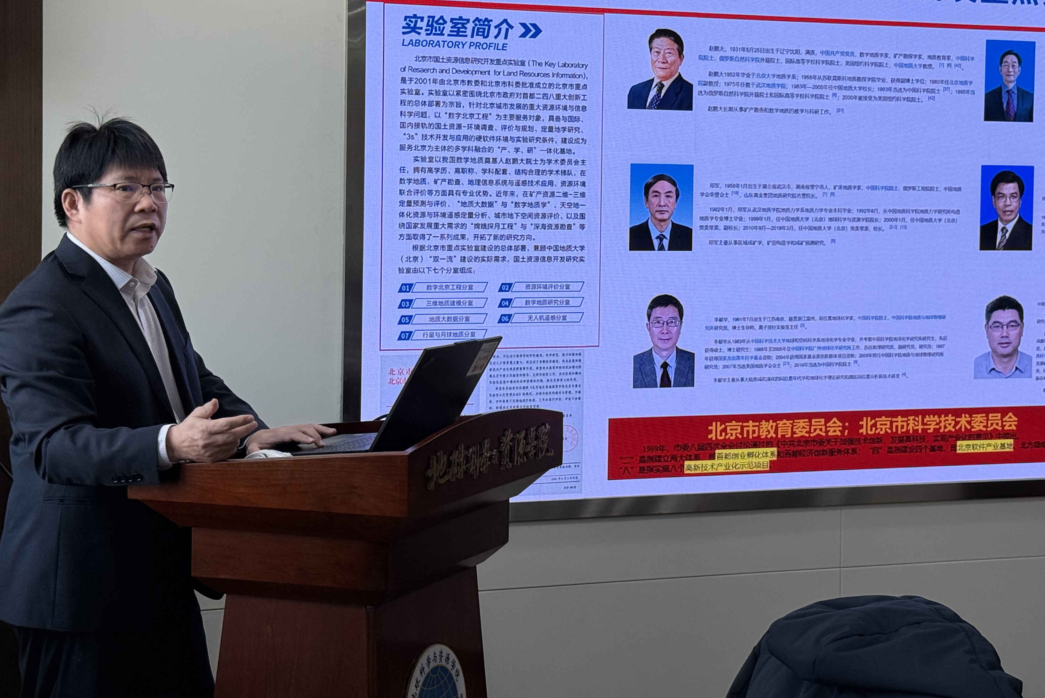 实验室主任王功文教授作专题汇报,系统梳理了实验室在“十四五”期间的核心成果与“十五五”发展规划,重点介绍了实验室在深地国家科技重大专项实施、数字地质学与AI深度融合、金矿集区数智勘查平台(透视山东典型案例)示范工程创建等方面的卓越成果。他表示,近年来,实验室助力地球科学与资源学院增设的“大数据与数字地球”“地震地质学”“比较行星地质学”三个新方向,以地球系统科学为核心拓展学科布局,服务首都创新发展,辐射全国地学大数据与AI+人才培养需求。