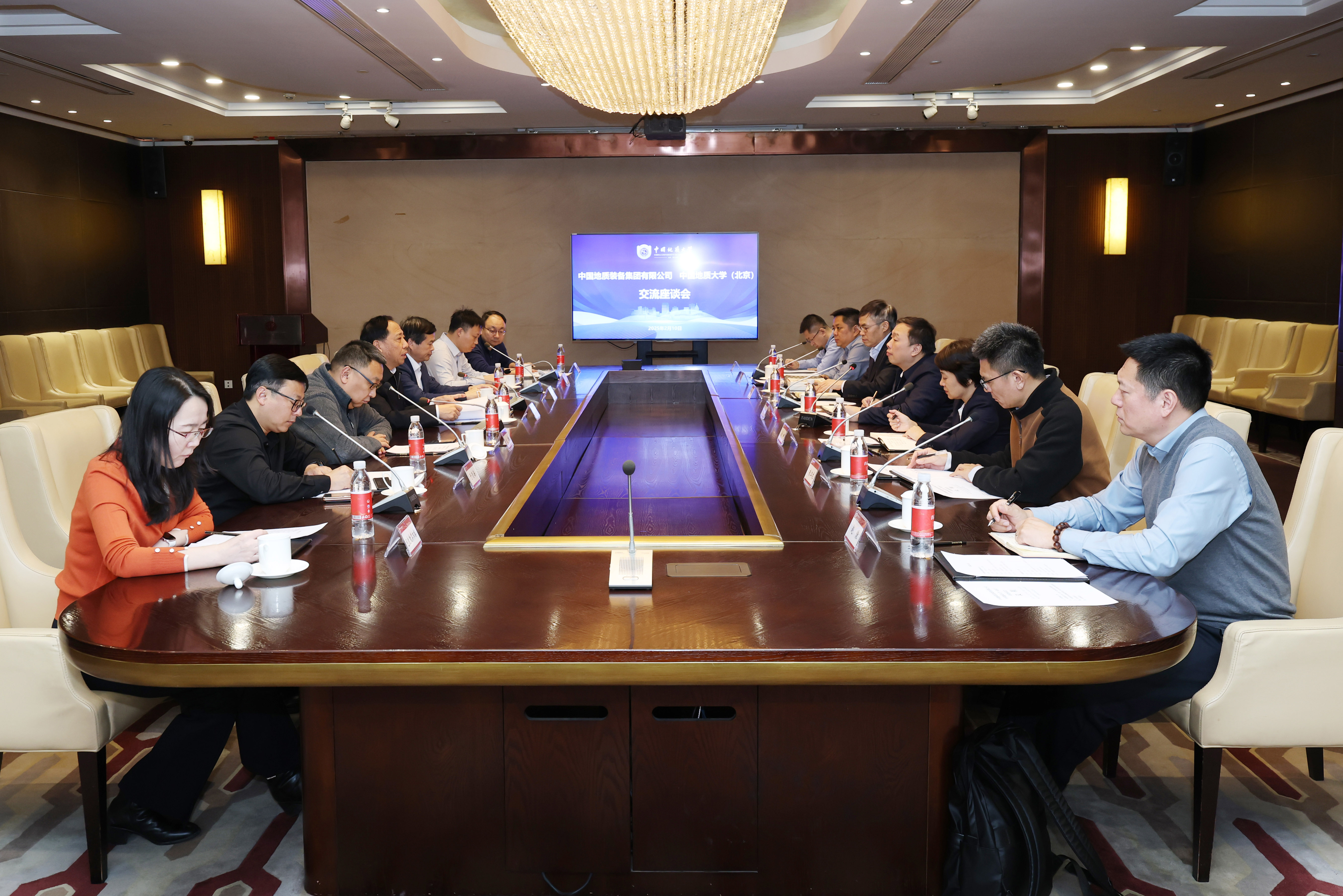 会上,双方与会代表围绕具体合作领域进行了深入交流。中地装集团科学技术研究院、市场拓展部、北京海光仪器有限公司、地质仪器厂有限公司等单位负责人,以及我校科技处、校友与社会合作处、工程技术学院、地球物理与信息技术学院相关负责同志参加座谈。