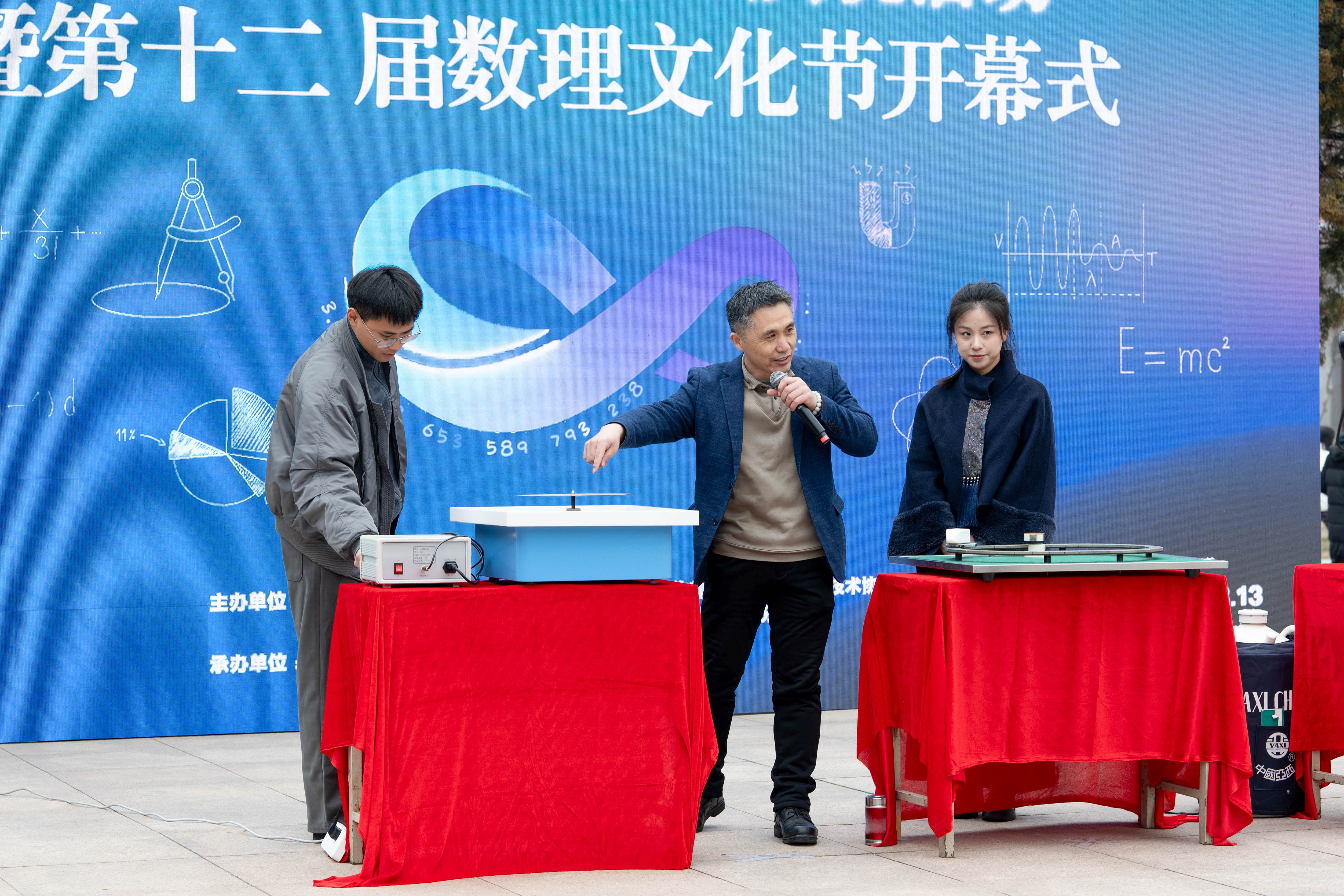 开幕式上,尚武俱乐部献上了精彩的开场表演,展现了当代青年朝气蓬勃、奋发向上的青春风采。纪实短片生动呈现了同学们对数学的理解认知,以及数理领域工作者对科学真理的执着追求与坚守。趣味数学问答环节气氛热烈,在场同学积极回应、踊跃参与。随后,数理学院教师董爱国、张小西、屈云飞进行科普实验展示,以生动神奇的实验现象直观呈现数理奥秘,赢得了在场师生的阵阵掌声。