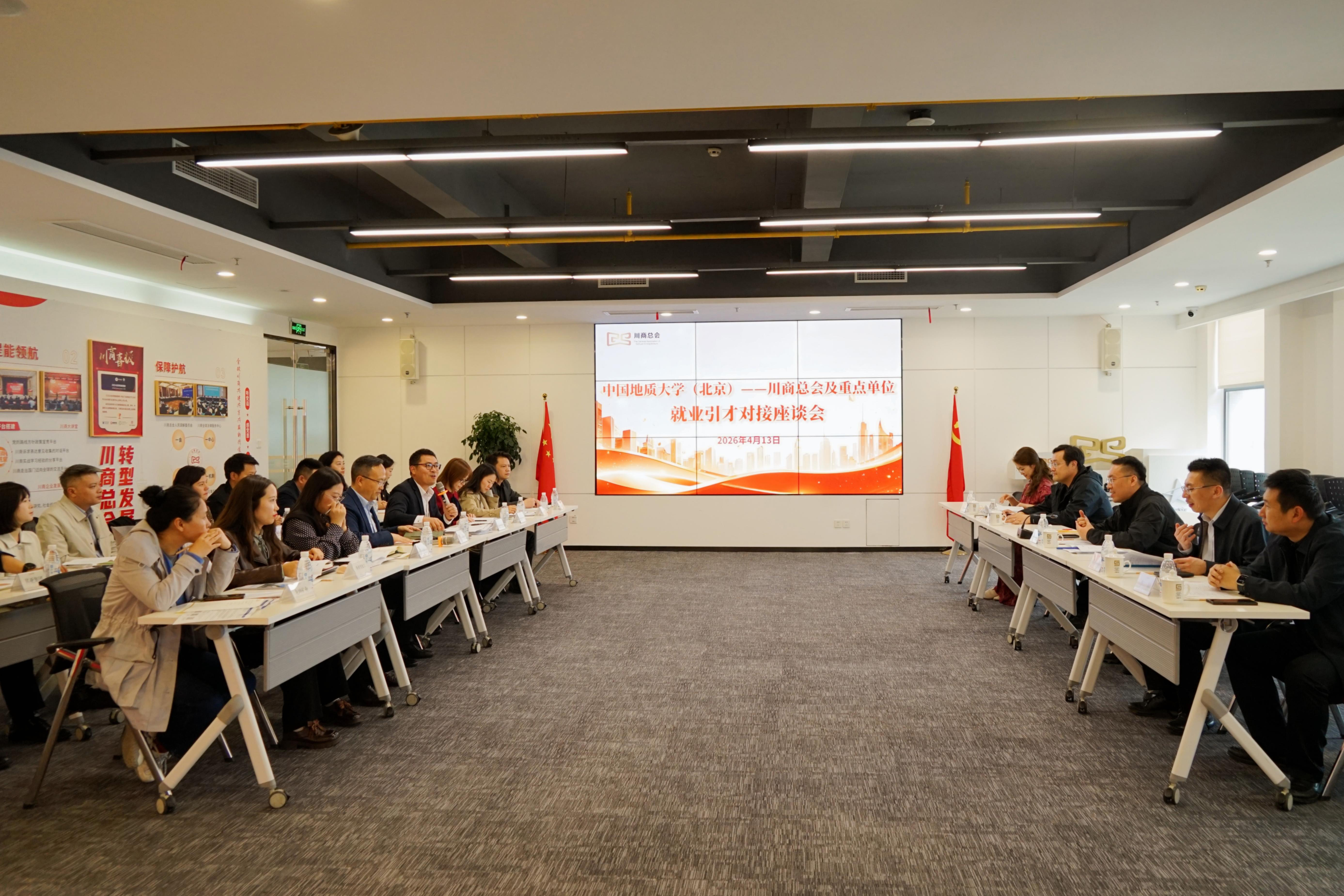 4月13日下午,多宏宇一行赴川商总会,与川商总会及在川重点企业代表举行就业引才对接座谈会并参观新希望集团常新文化馆、党建馆等场所。川商总会党委书记、秘书长张明贵,党委副书记、执行秘书长唐俊,以及新希望集团有限公司、四川冶控集团、其亚集团、中全通技术有限公司等十余家企业代表参加座谈。会上,双方围绕人才培养、实习实践、产学研合作等议题开展深入交流,就建立长期稳定的校地、校企合作关系达成广泛共识。